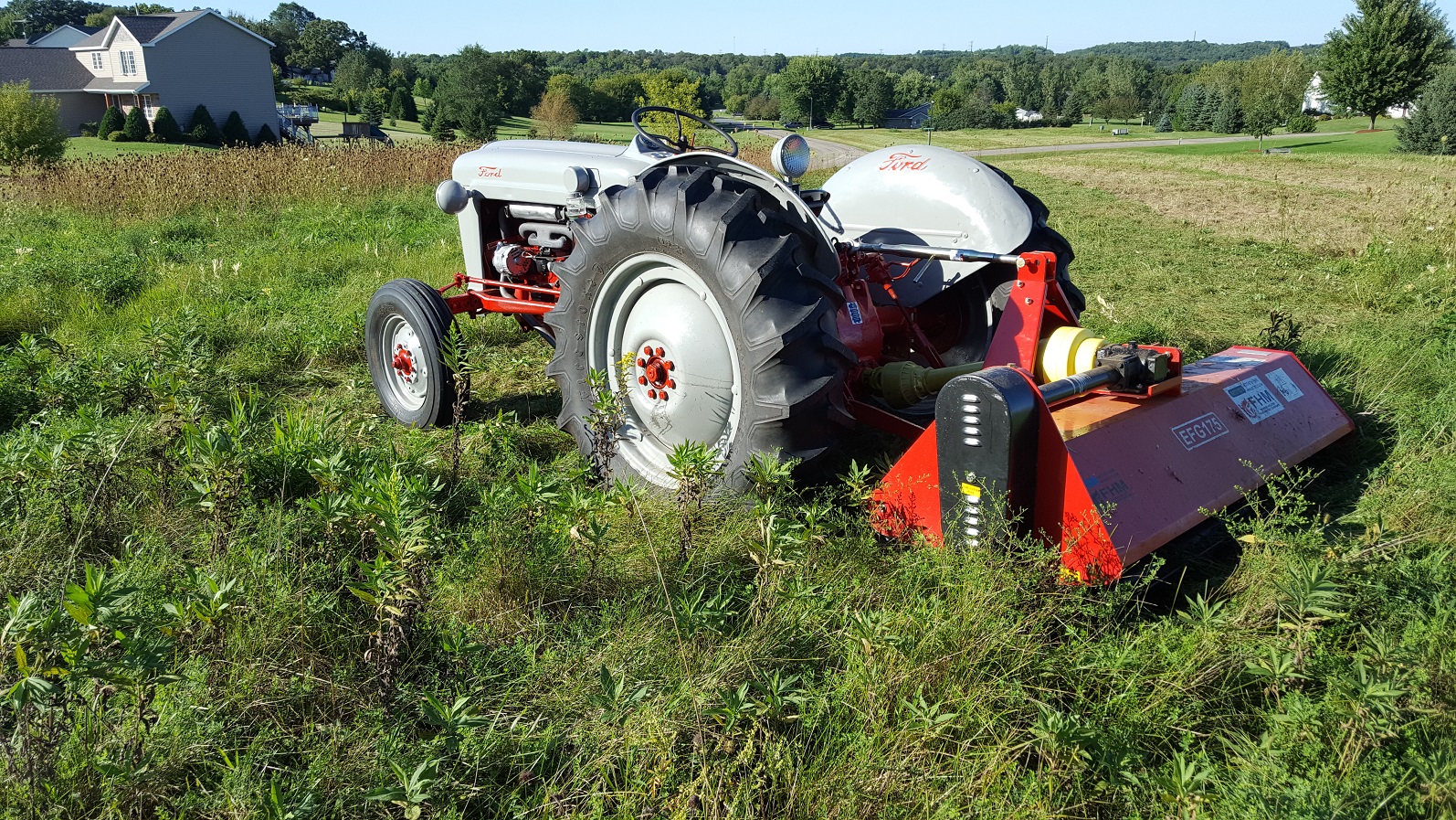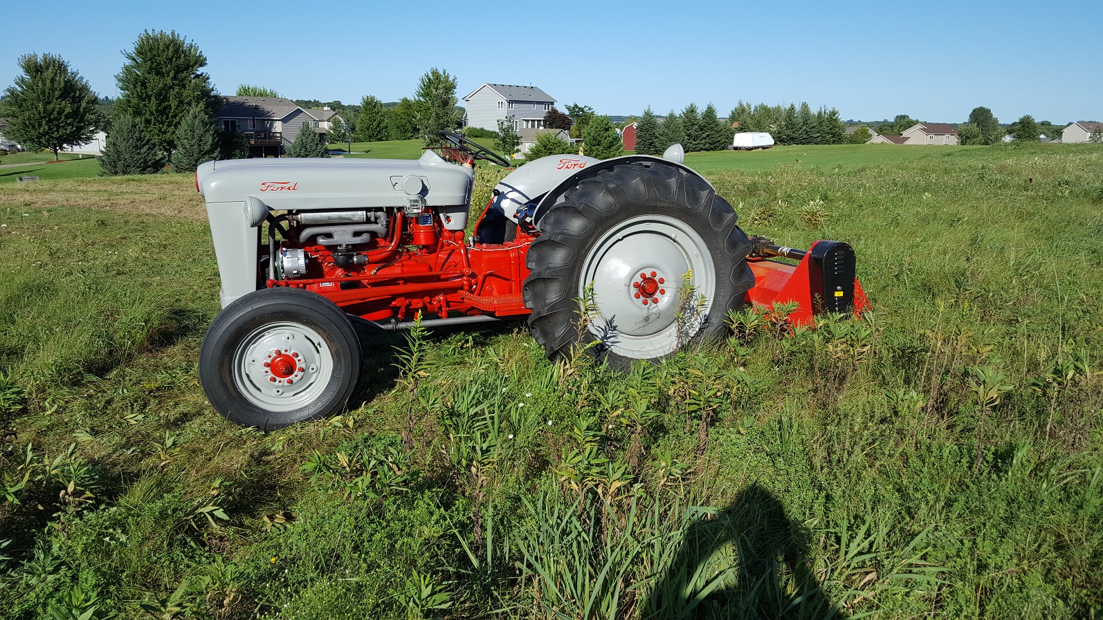 I thought I had gotten a picture of some of the stuff that it leaves standing, but apparently didn't.. Anyway, I've figured out the problem, it's the same as when I mowed outlots earlier this year with a Gravely zero turn. The problem is stalks that are tall enough that the front of the deck pushes them down, and the back of the deck (the roller in the flail's case) gets to it and keeps it held down before the front clears the end of the stalk (never has a chance to pop up inside the deck). It passes right under the blades or knives and pops back up behind. I have one area that still looks terrible after mowing, and more passes doesn't do much either. So far I've had the mower set fairly level and also high, I'm going to try dropping the back of the flail low on the roller, then using the top link to lift the front so the flails are more 'exposed' to the incoming material. I'll try to get more pictures tomorrow and report if the change in angle helps or not...
