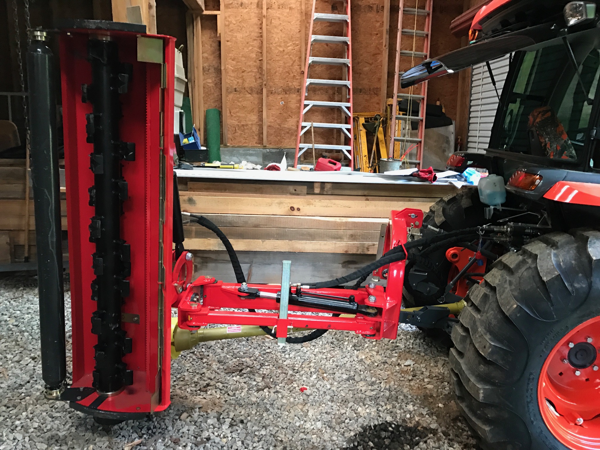 I am new to flail mowing, this rig works well for mowing around trees. We have no flat ground on our place, so being able to control the angle is great.