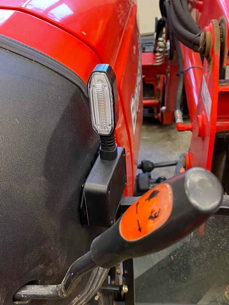This is my work in progress… there’s two inclinometers, one on the tractor where the light is mounted and one on the quick attach. It’s hardwired between the two and has a power saver feature. I can select the base reference of either the tractor body or relative to gravity. In both modes, I can tare it to zero out (which is useful for different implements). There’s 5 light positions. Green indicates -3° to 3° reference while amber (between 3° and 5°) & red (more that 5°) flanks both side to denote how much positive or negative tilt.