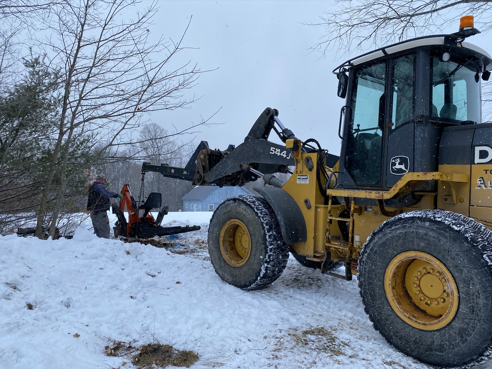 She (the owner) does have a front loader to lift the backhoe. Wednesday is the day.