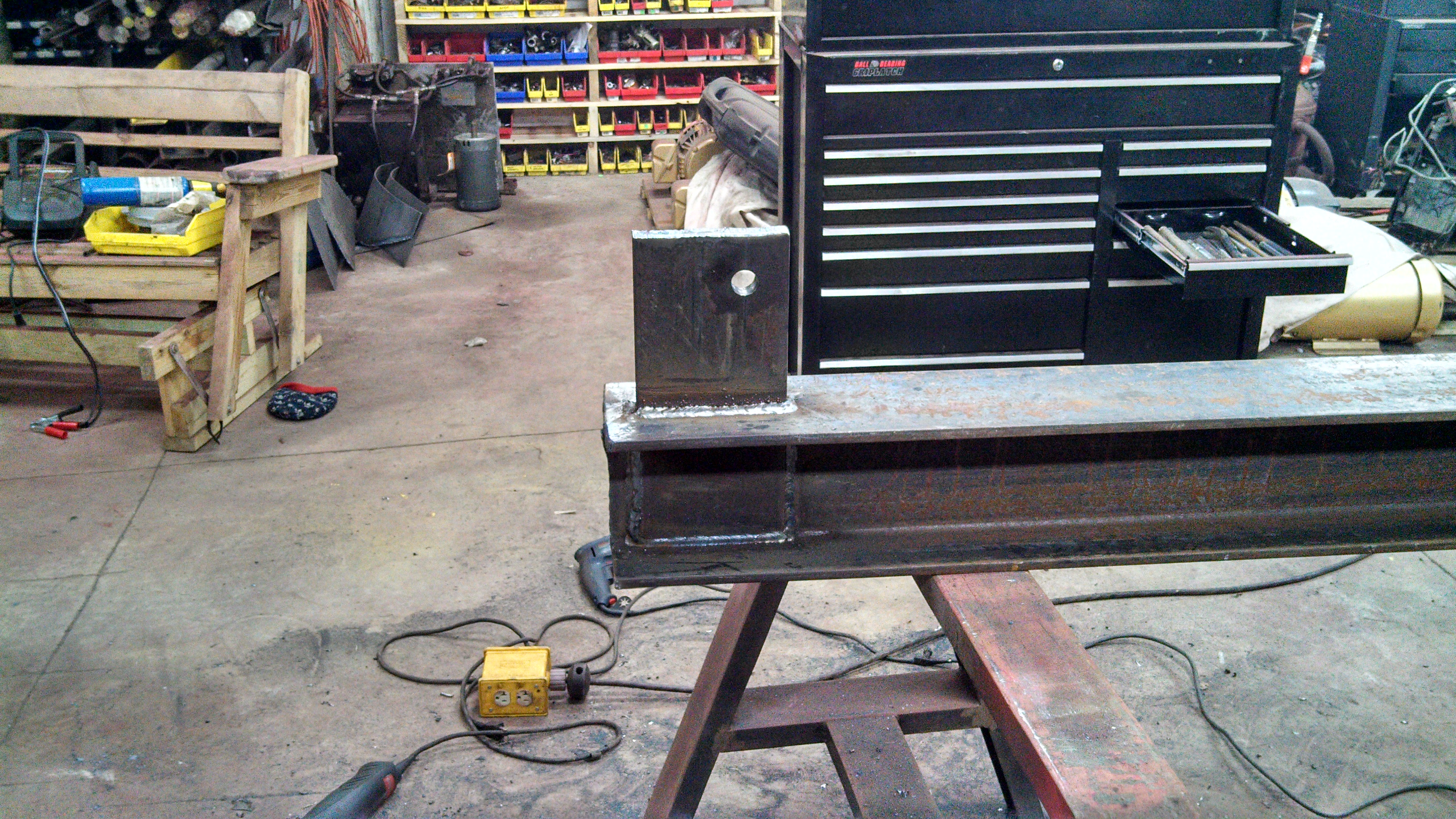 Yes you are probably correct. My comment wasn't meant to criticize your design. It all looks well built and looks like it will all handle 20t. Just pointing out the weakest area I saw.....which I am not implying that it isn't strong enough. My preference is I do not like a surface weld like that. Rather I like an anchor block with more weld area tied to other parts of the beam. Same for wedges. Huskee has a good design for anchor blocks, but then again, they don't use a one piece beam either....Rather a welded up beam