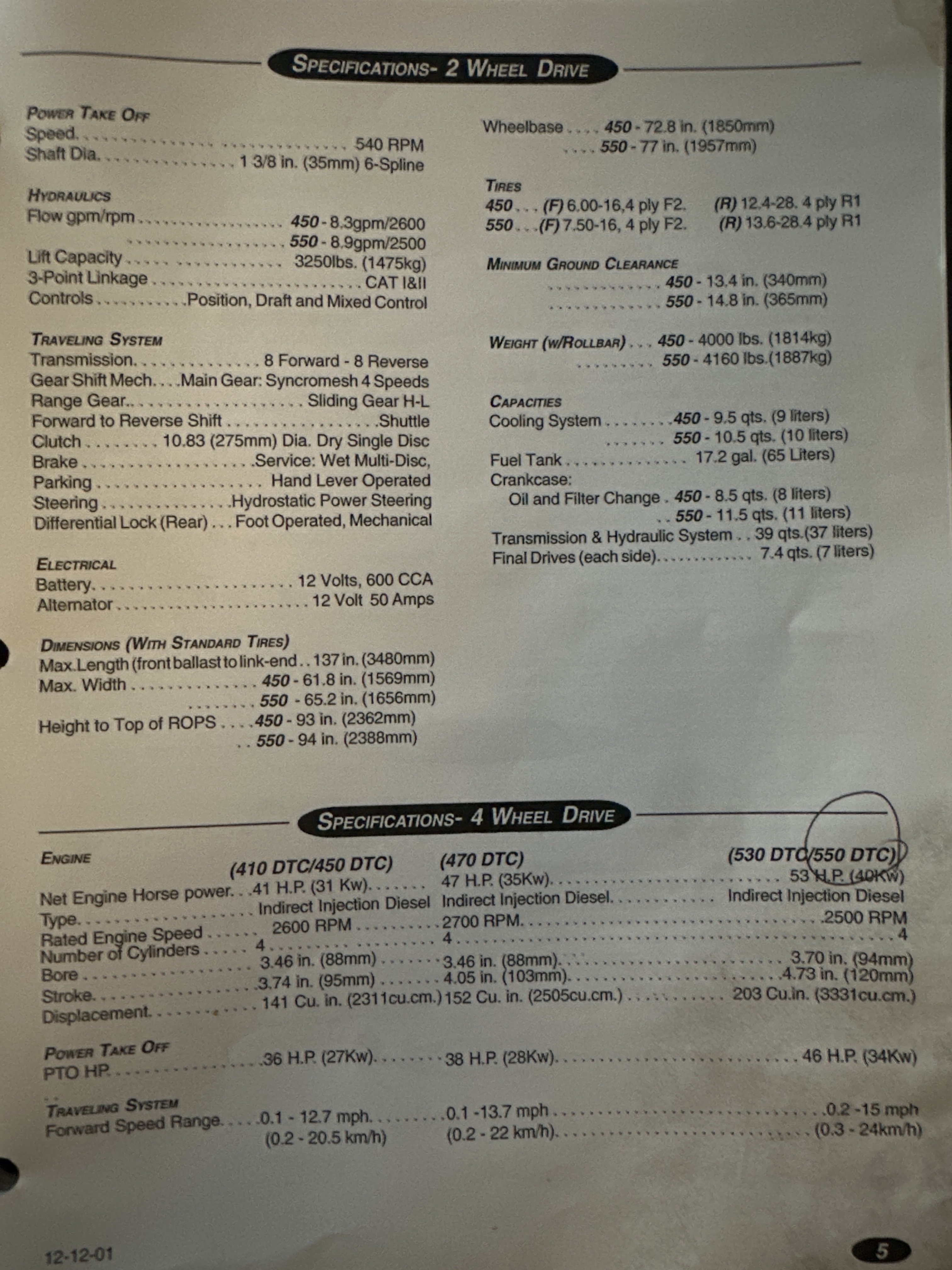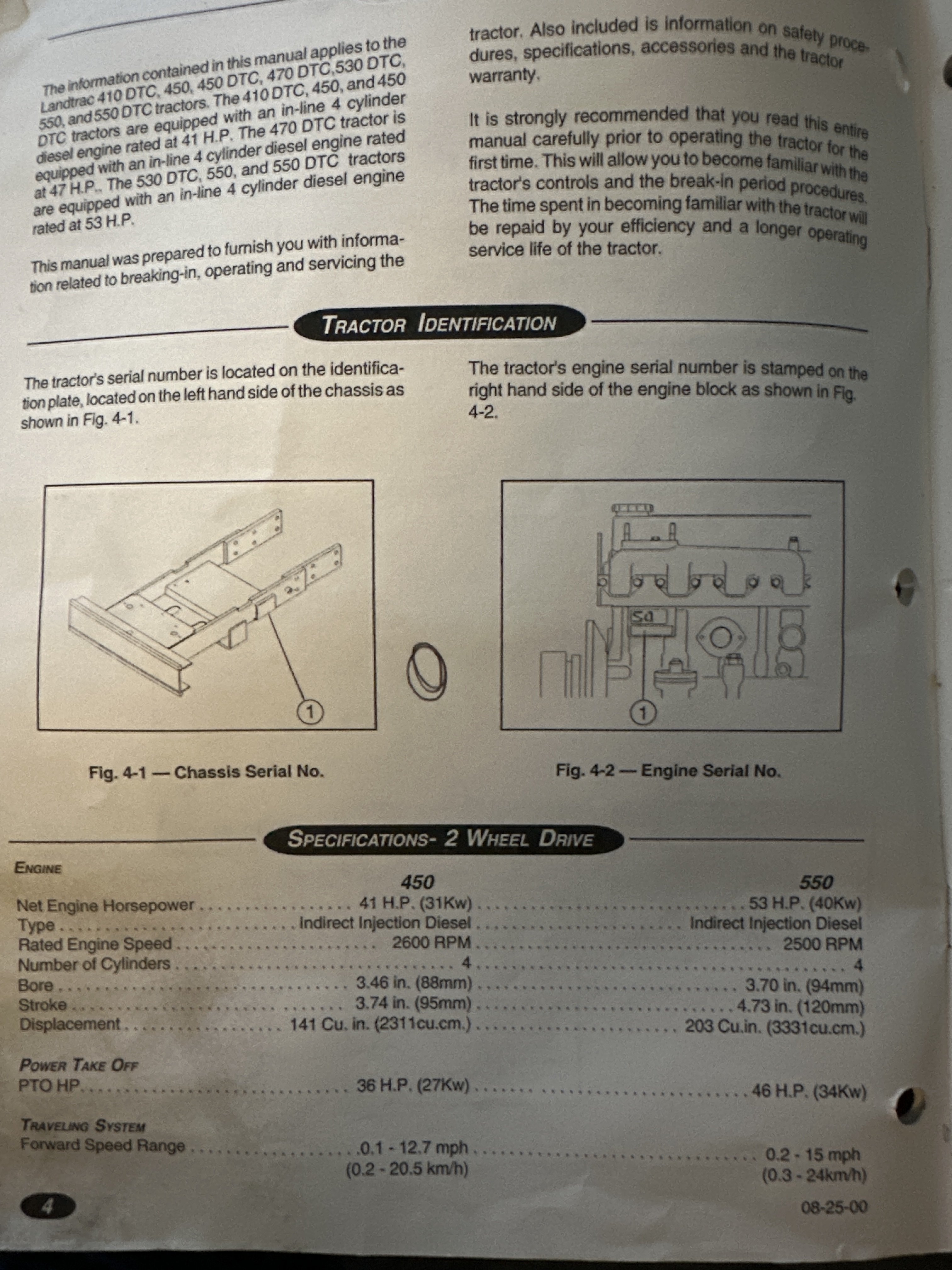 I bought a used 2001 long landtrac 530, I am trying to find manuals on it as well as determine the type of Mitsubishi 3.3 liter 4 cylinder diesel that is it, currently for the purpose of figuring out which freeze plug hole I would be able to install a block heater in. Also I am not sure the type of fluid for the hydraulic system. Any help would be greatly appreciated