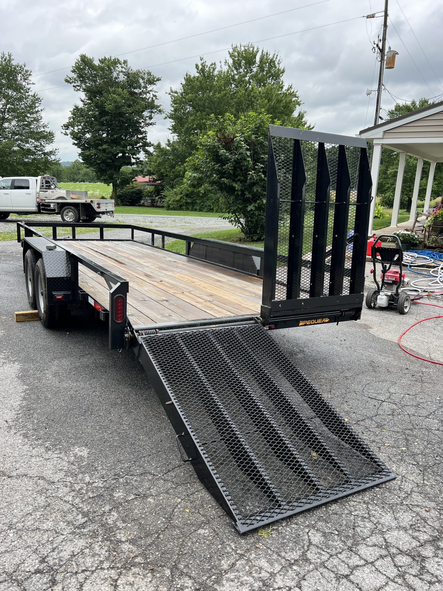 I kept a lookout on FB marketplace and spied a 2021 Pequea 20’ x 80” 10K that has a lower break over angle and split full width ramps. It’s only 2 years old and looks like it was never used. Owner said he overbought and only used it for 4 wheelers. No evidence of any abuse. Towed it 50 miles home and it tracked perfectly.
