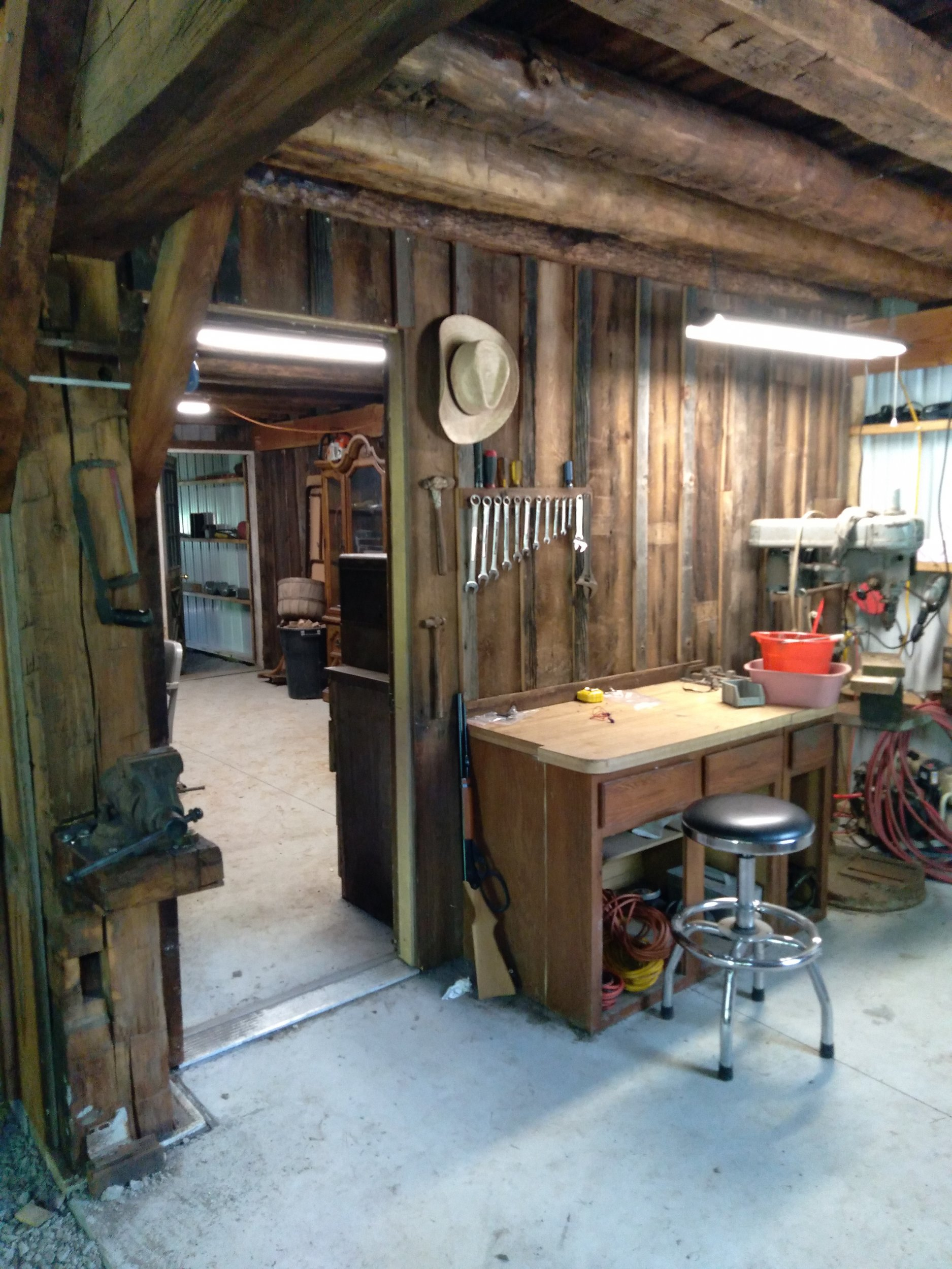 The old barns that my great great grandad built, shortly after the Civil war, fell into disrepair, and I am currently in the process of taking them down. I hope this old hay fork and trolley dont get busted up too bad when I pull down the frame of the last one that is still standing. I would like to hang it up in my new pole barn, as a reminder of the good old days of loose hay