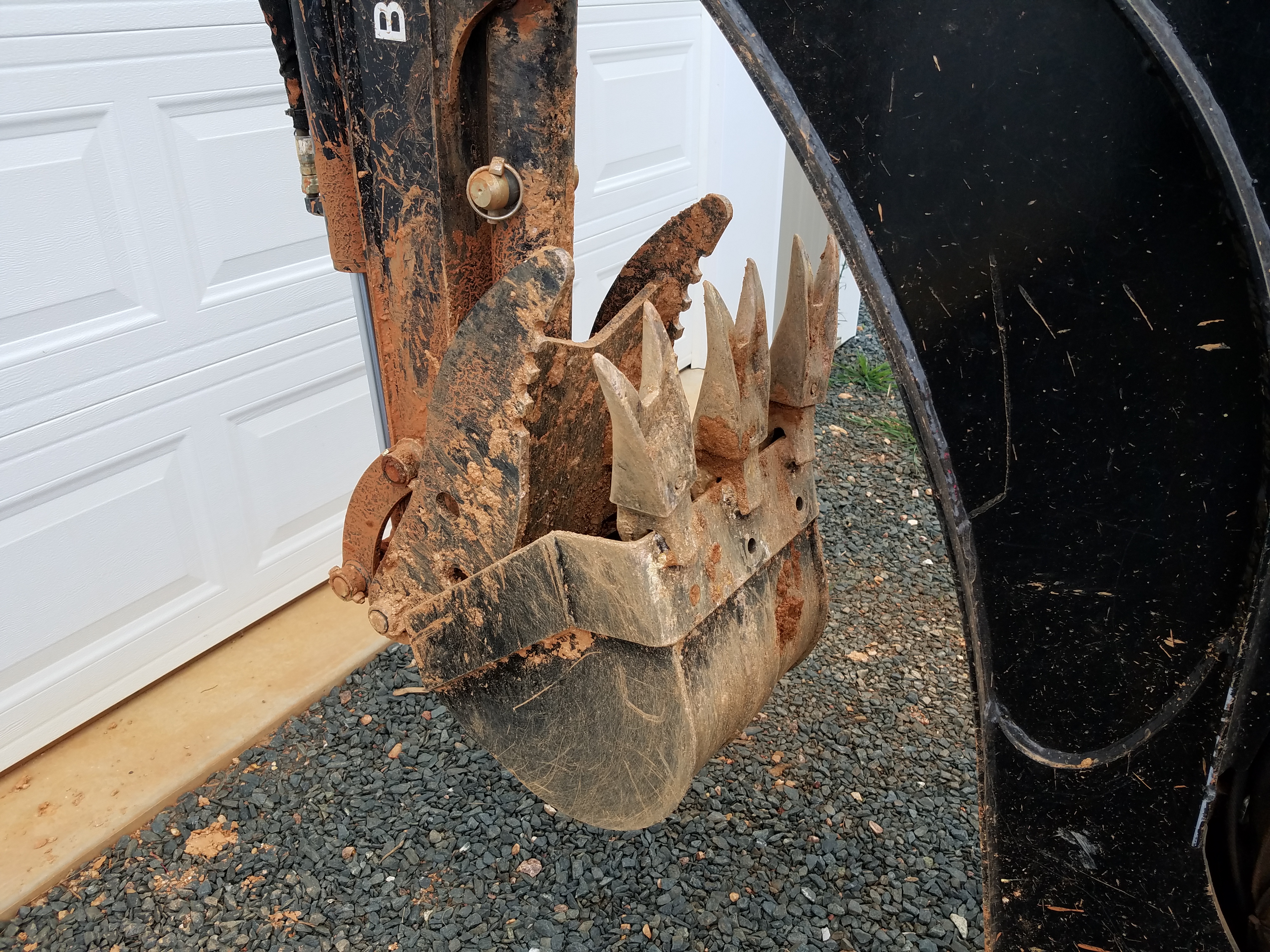 So I swapped my 16" four tooth bucket out for my smaller 12" with three teeth which should give more digging force (physics baby).