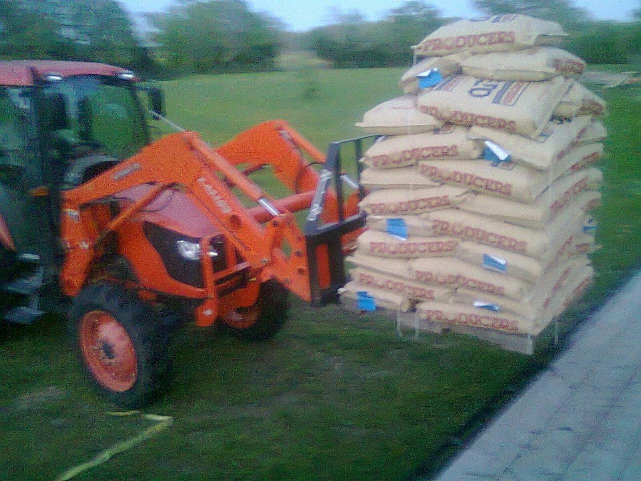 The lowes guy was impressed i could lift a 2600 lb pallet. I offloaded 2 3000 lb pallets of decorative stone for my neighbor had to grab the pallet long ways 42" rather than the 36" that was pushing it with only a little over 1000 lbs on the 3 pt the rear tires were not doing much in that case