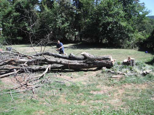 Finally got back to it this weekend. We had two large dead trees which had to come down. One was a maple and the other was a Virginia pine. I notched them very carefully and then used the M59 to direct them away from the house. The maple was within 20 feet of the kitchen and the pine was actually growing up against a small deck off the kitchens porch.