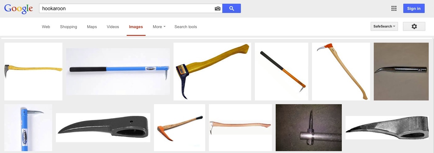 Some of the things labelled hookeroons are actually pickeroons. A hookeroon has a hook to help the log stay on while you twist and pull it into position. A twist of the wrist knocks it off. Here's a modern and exaggerated picture of a hookeroon so you can see what I mean. The hook shown here is actually too big for simple wood handling so maybe it was used for a specific purpose.