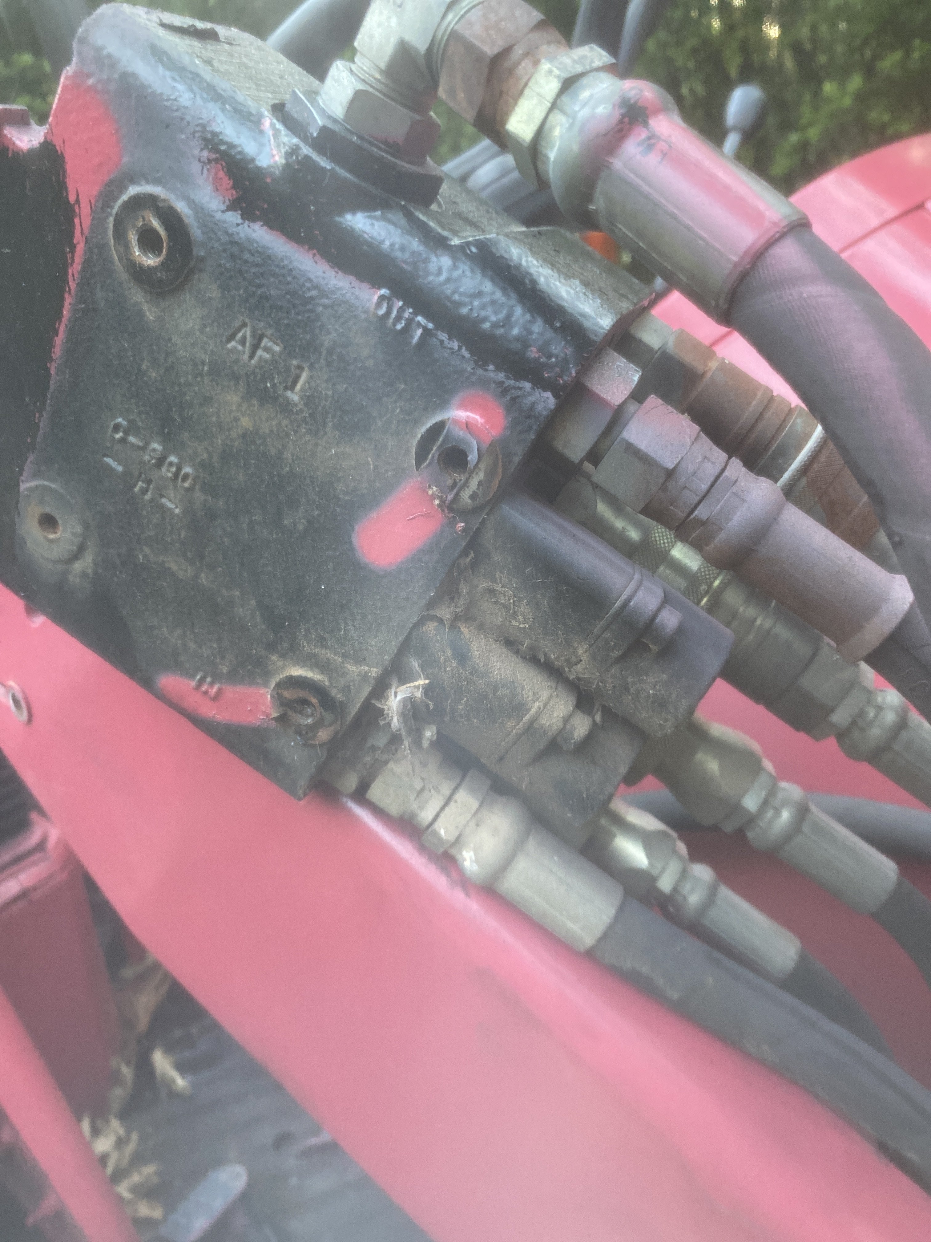 Look on the loader valve. That's going to be the easiest place to work. It may look something like this one, which is very common design. You see there is a relief valve. The ports on that side are for pump pressure supply. On the opposite side are outlet (or return ports. You should have two lines connected on that side. Those are the two you want to switch. Those ports could be marked. One with N one with T. Leave the other five lines alone. In most cases you won't need to mess with the lines on the tractor.