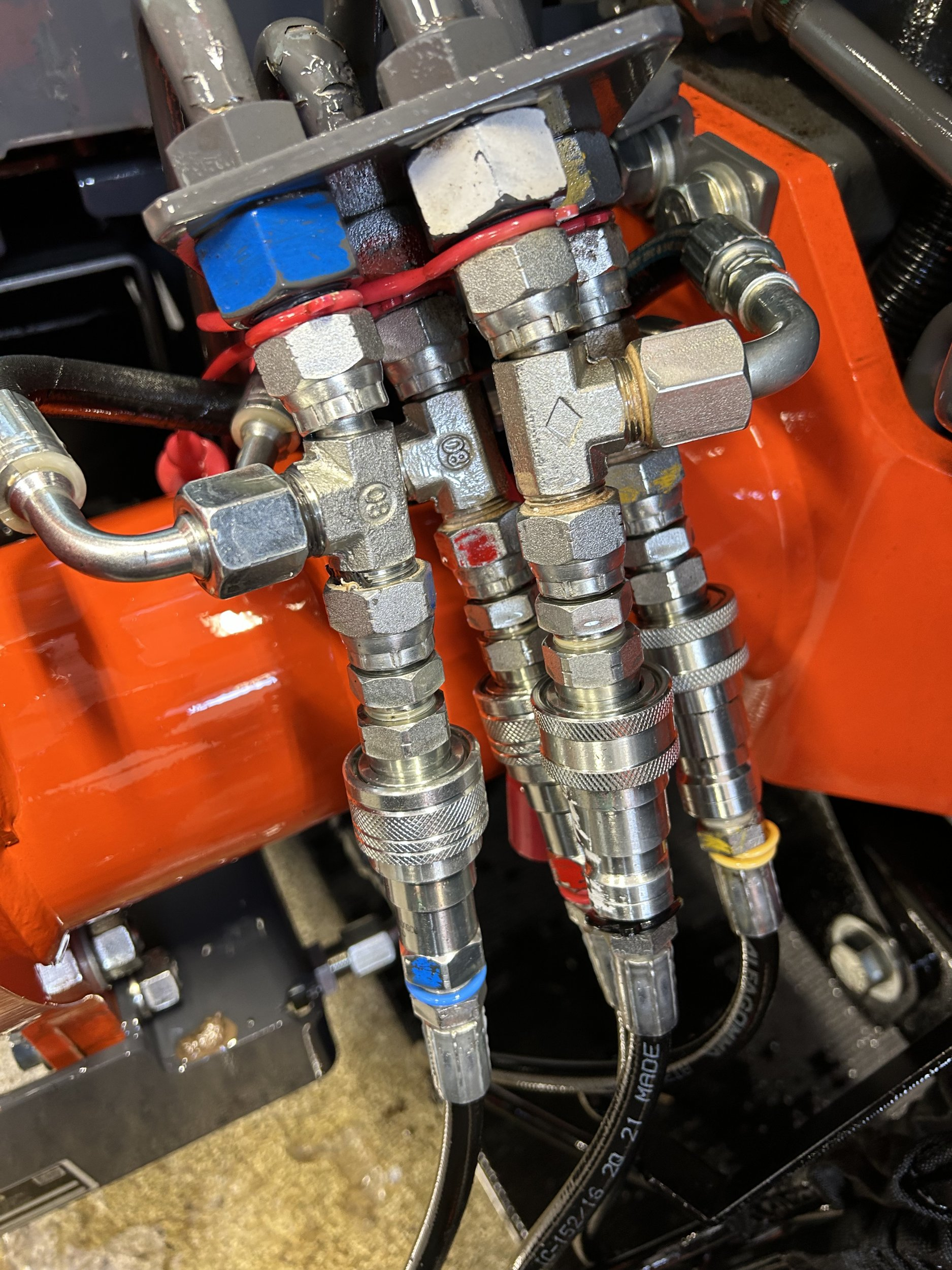 Howdy - somehow I did something really stupid. I have to clear a 100' by 100' patch of ground that is covered in four to five feet of snow as I have a company coming to drill a well early next week. I am using a front mounted snow blower. I have to make multiple passes as it is a combination of snow and ice. In clearing I managed to jam the tractor into ice to the extent where the connectors are bent and cracked and leaking hydraulic fluid any time I move the controller arm.