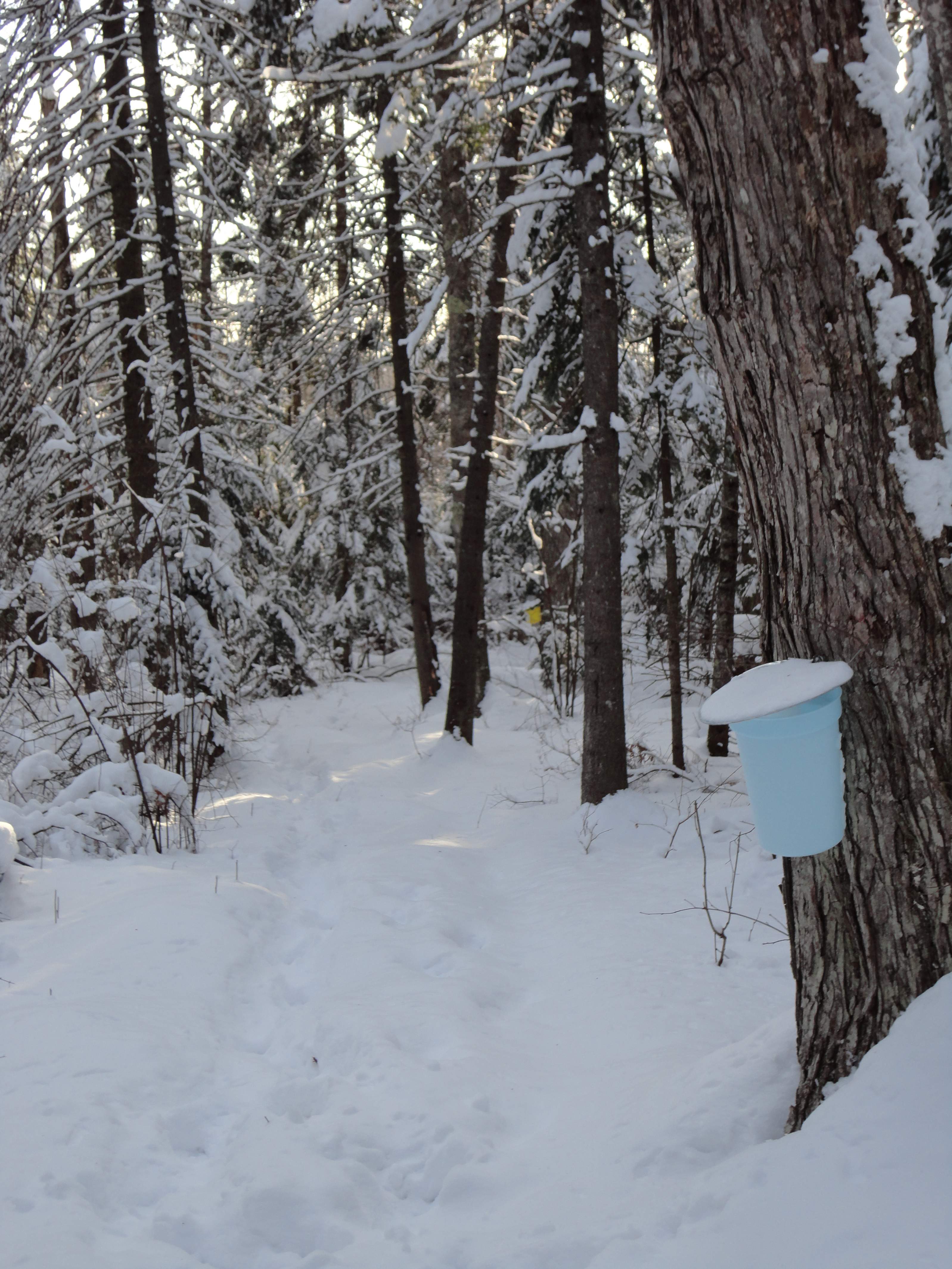 Last year I could get back there all year with ATV and bring sap back in a large CTC cooler strapped to front of ATV and bring it to my 45 gallon plastic drum on shady side of garage, but this year it looks like I will be using the snowmachine. (tractor cannot get up ridge behind me in winter so can't use the Kubota !)