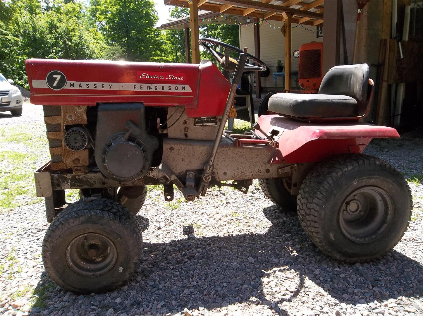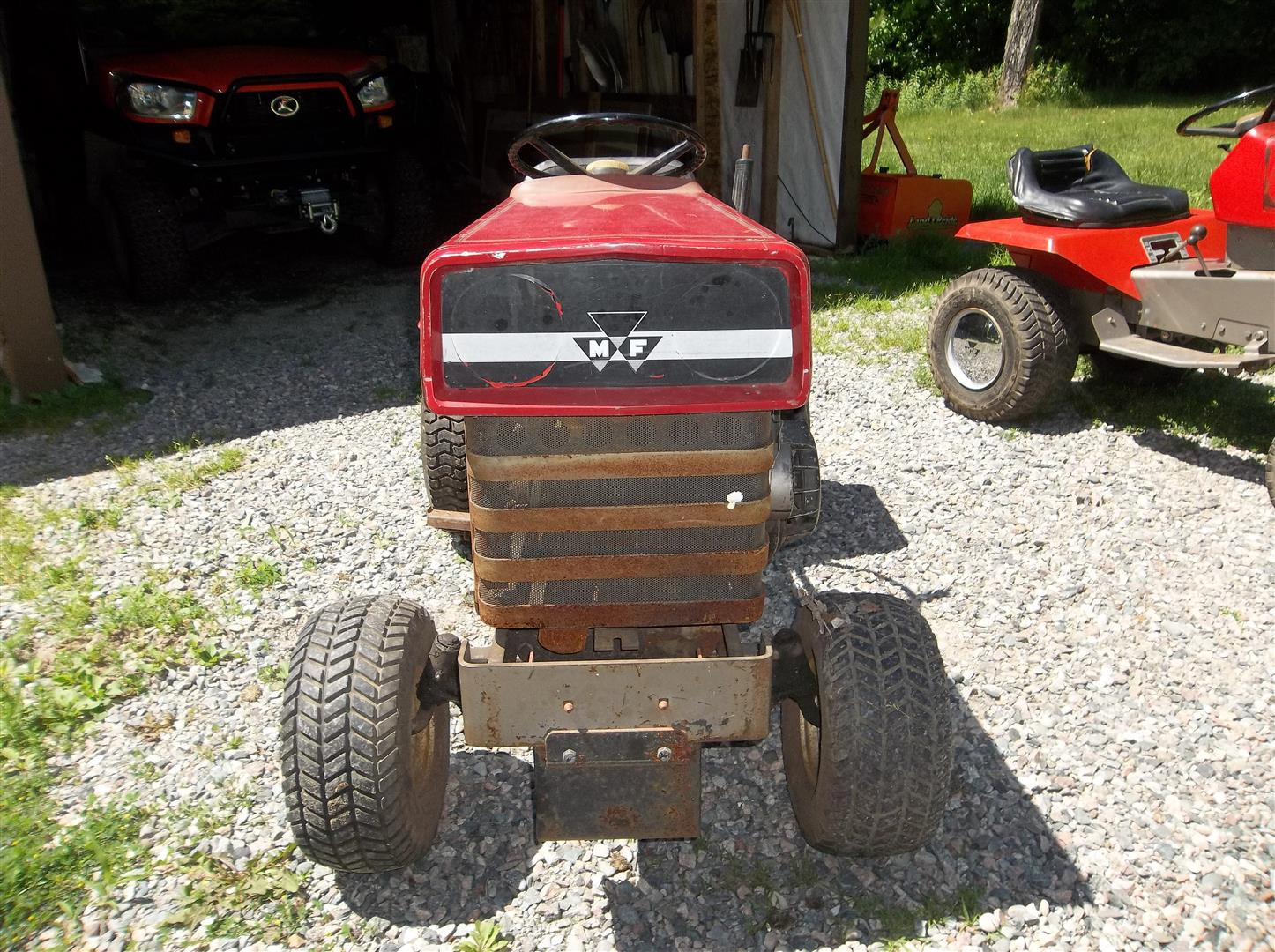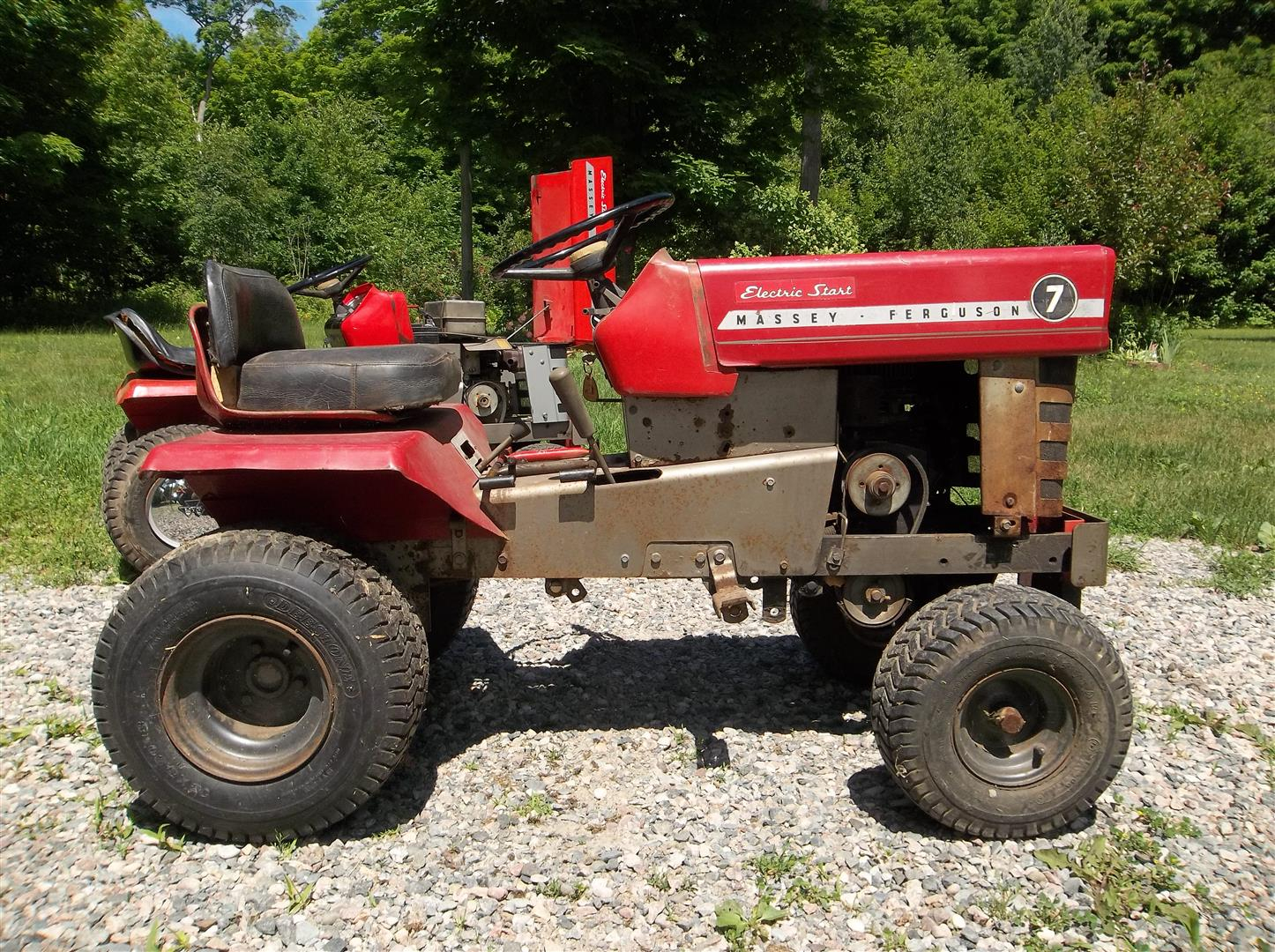 Well, I still want to add a full size classic Massey to my collection, but I just scored two 1971 MF 7's. The one with no hubcaps needs motor work and the one with hubcaps needs a seat. Both have mower decks.