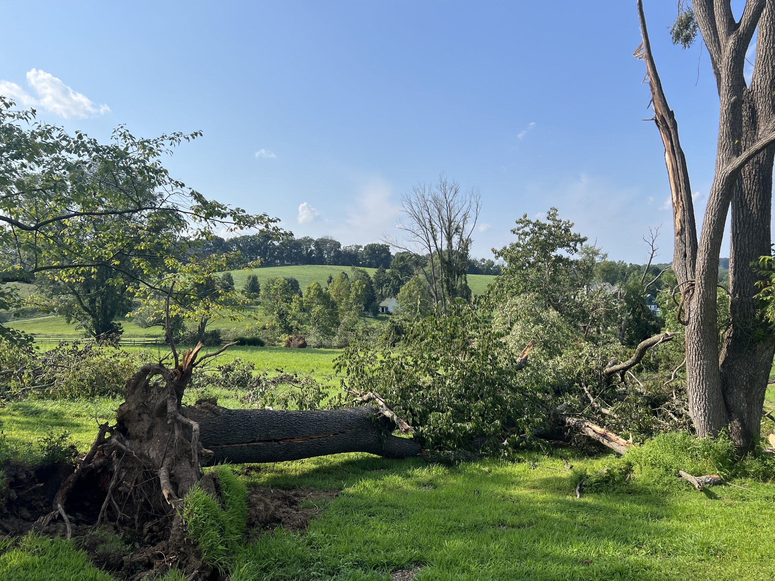 One of my farm customers bore the brunt of the damage. An estimated 300 medium-large trees blown over or snapped off like tooth picks.