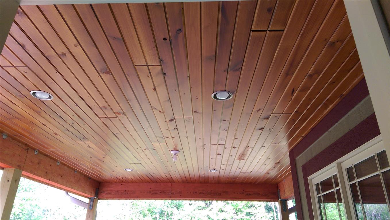 I thought I should update this thread. I finished the porch ceiling on our cabin this weekend. I wound up going with exterior plywood bead board siding. Thanks to all who provided guidance.