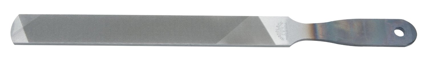 A large, double cut file to take down the nicks and get the bevel right, then a fine cut file to finish shaping followed by a few passes with a red, DMT "stone" frequently dipped in a bucket of water. It's almost sharp enough to shave with when I'm done with it. Light limbing with a sharp axe is one of life's great pleasures.