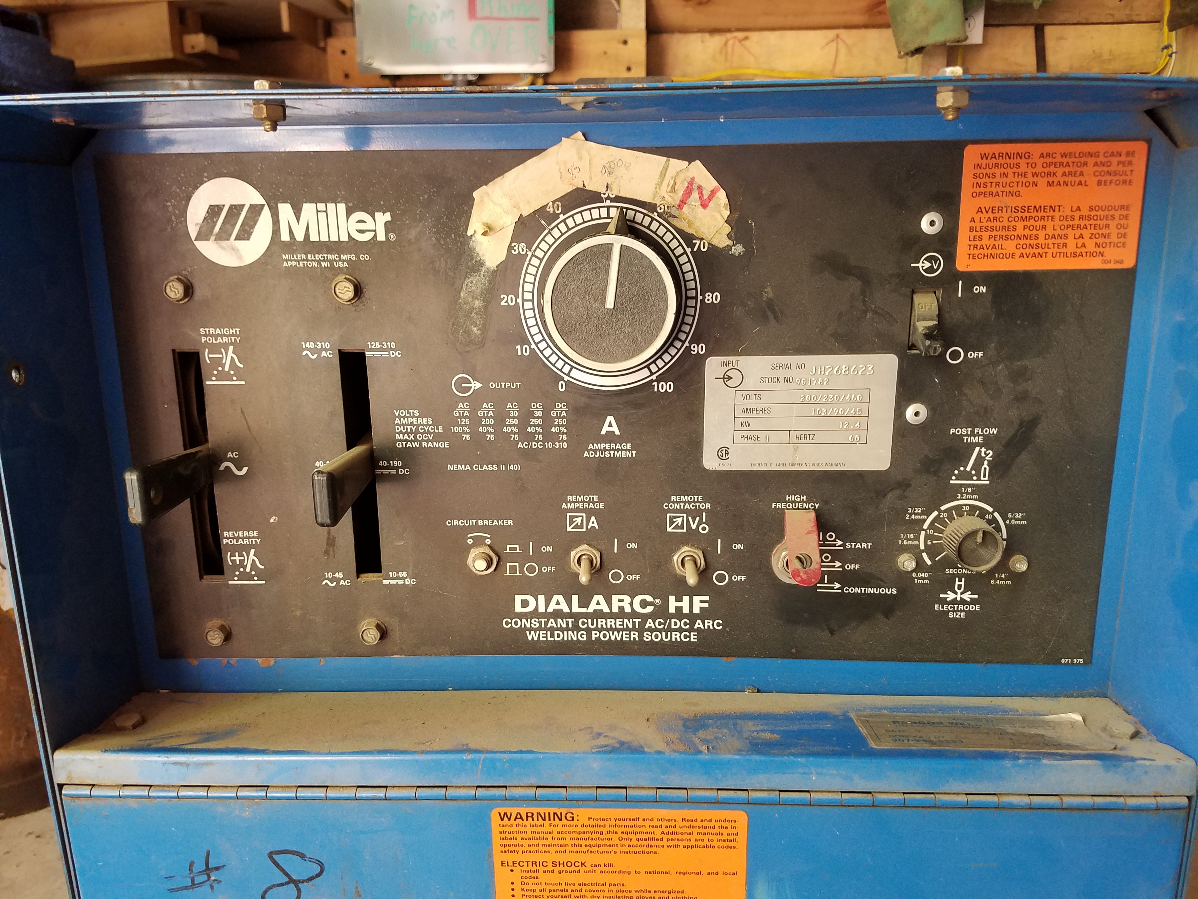 Just had Miller Dialarc 300 dropped off, little dusty, didn't have any rods to try it out on but he said it works good. It has the same plug has my small Miller mig welder, plugged it in and the fan came on so that's a good sign, I'll have to get another breaker, outlet and bigger 220 cable anyways, next month's project.
