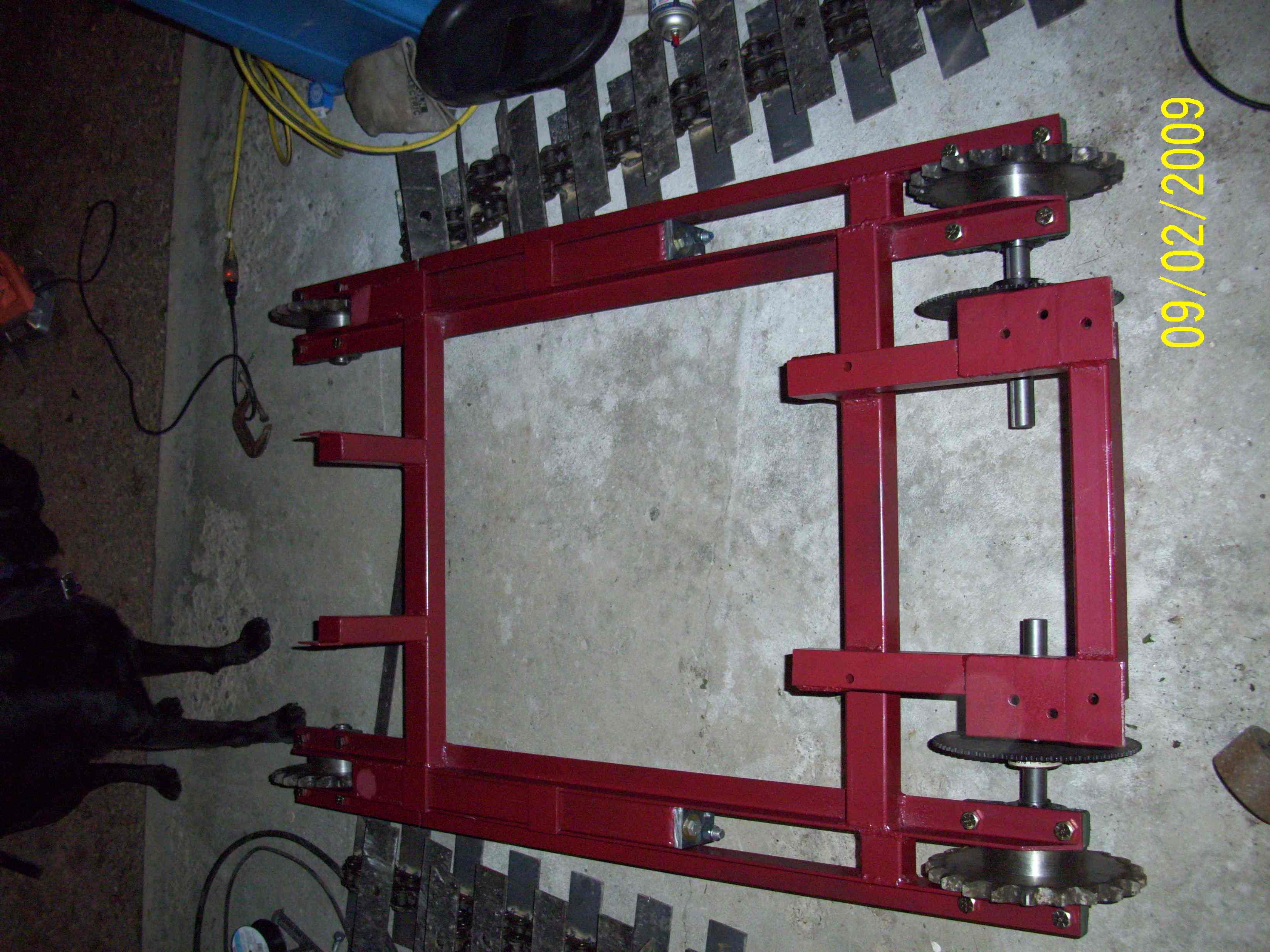 I have less than an hour on the unit so the bugs are still being worked out. The track design was borrowed from an earlier posting so it just took lots and lots of time to cut, drill, weld, weld, weld the track together.