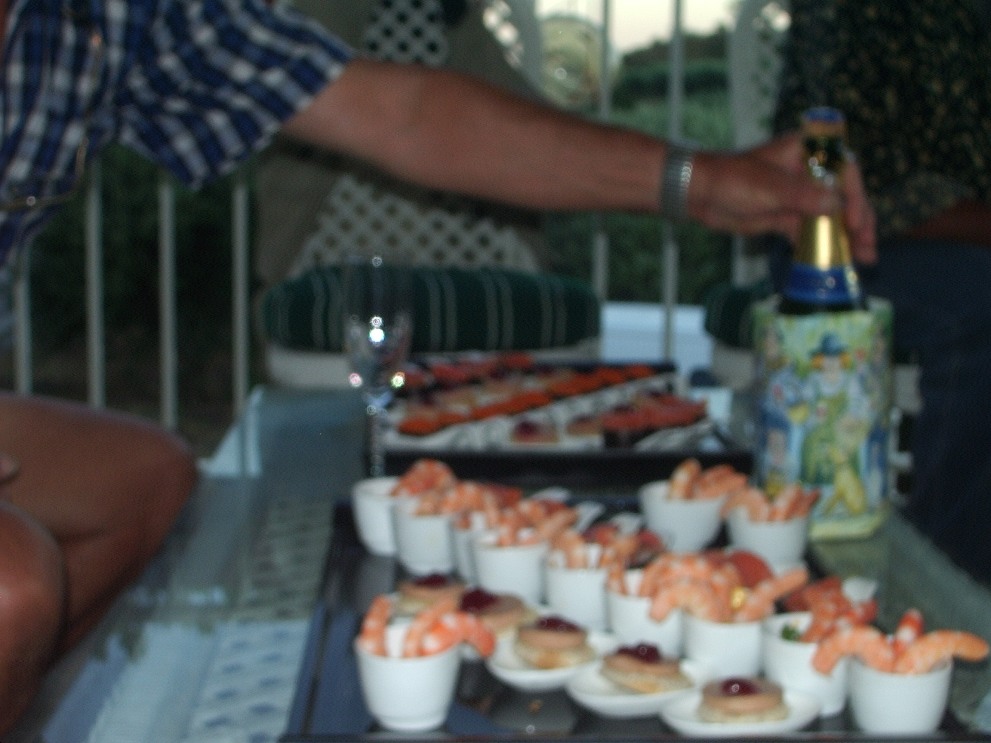 I knew at the store when I saw them that they would be perfect for my husband, for his "style." He wasn't to happy when I brought them home because we really don't have money laying around but I knew in my heart once he had them int he house he would'nt ask me to return them and I was right! ha-ha, do I know the man or what? Pictures are of our friends and the mis en bouches and dinner.