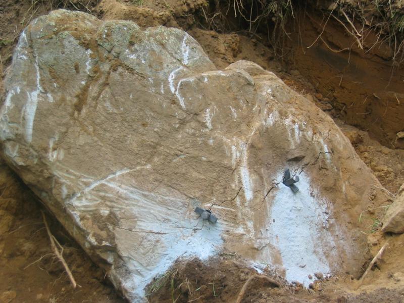 Here is the rock split in 3 pieces. It makes a creepy cracking noise when you pound in the plug kind of like ice cracking beneath your feet.
