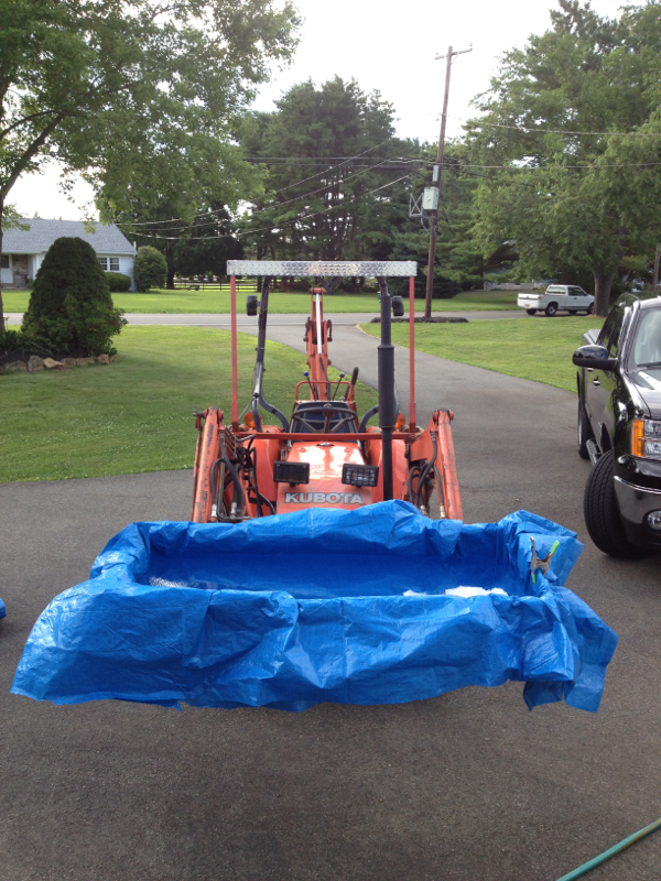 I have holes for a tooth bar and holes where I mount my snow plow to the bucket so I would loose water real fast without it. I guess I could put bolts with a little silicone but the tarp worked good. I like the hot tub idea. My 3 year old would love that
