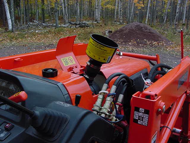 Nice fix for an ugly problem. The filler on my tractor is in the center of the hood and it's perfectly horizontal.