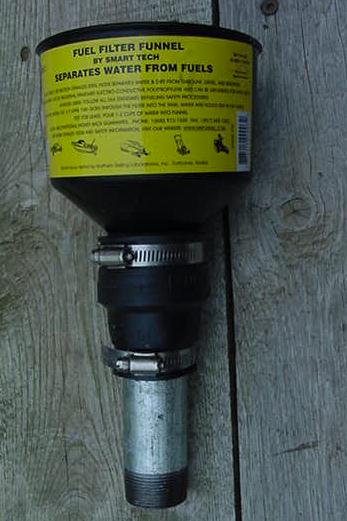 Darren - The diameter of the bottom section of the funnel is so small that it flops over in the tank fill hole when pouring into it. The middle section is too large to fit into the tank, so it doesn't hold it erect. I went to the hardware store this AM and bought a Fernco Fitting and 5" legth of 2" galvanized pipe. Cobbled it together - it aint pretty, but does the job. Put in 5 gal of diesel today without a problem. Will take a picture of it tomorrow and post it, for what it's worth.
