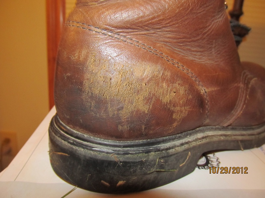 The foot lever is too close for sure but the end of it is bent the wrong direction and a semi-sharp edge hits right where your boot heel rests. Here's what my brand new boot heel looked like after a couple hours of scruffing that lever.