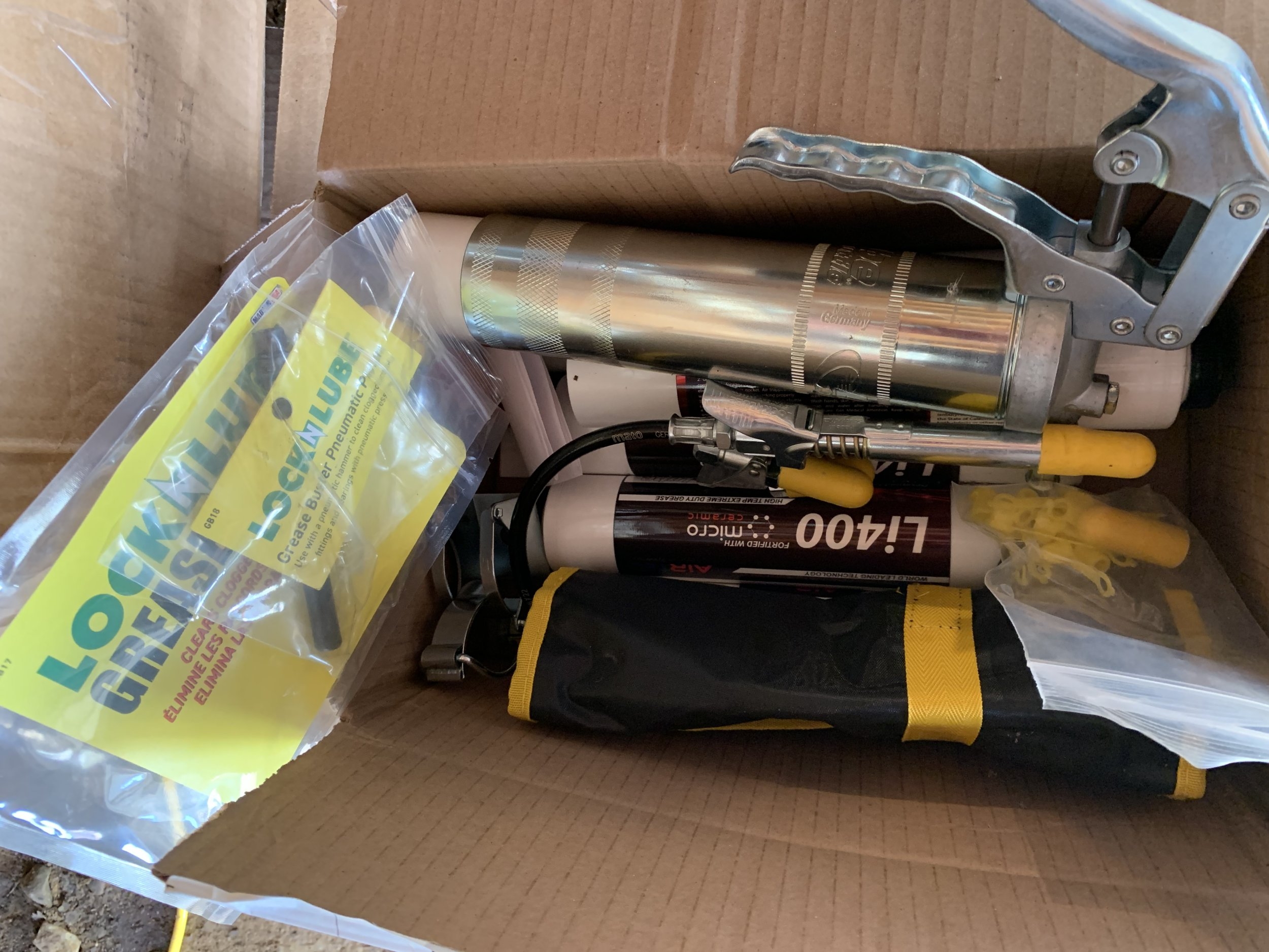 I have an assortment of crappy grease tools. After watching some TTWT videos (John Deere 1025R Lubrication (Greasing), Greasing The 1025R/1023E Drive Shaft, Lithium? Calcium? Moly? Expert Explains!), I picked up the LubeShuttle gun, Lock-N-Lube, Li400 grease, and an adapter kit.