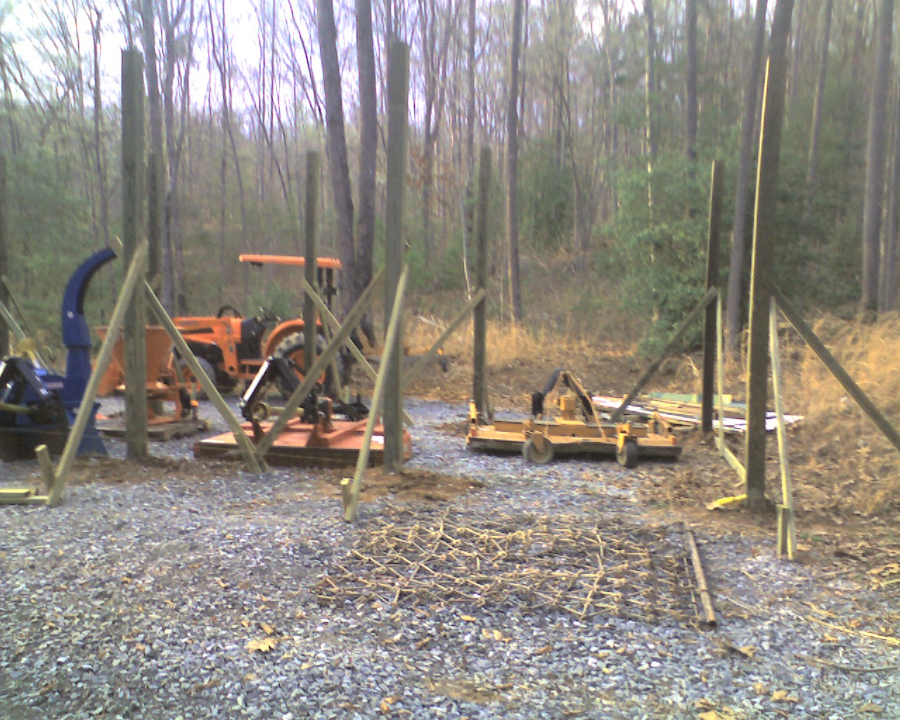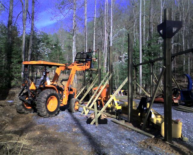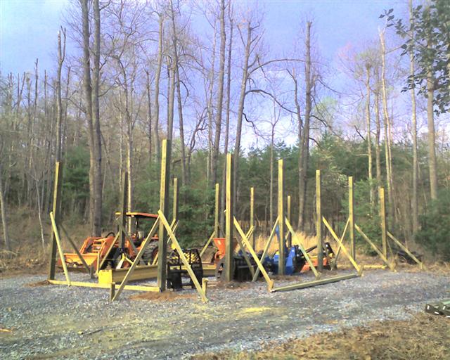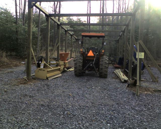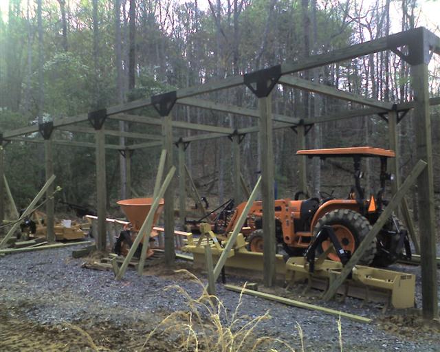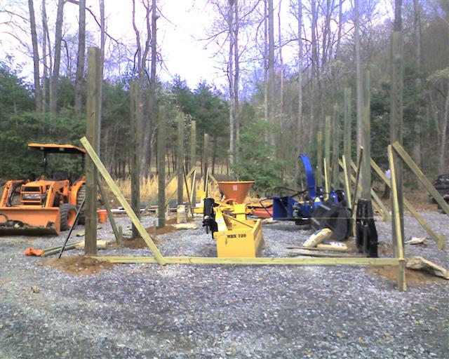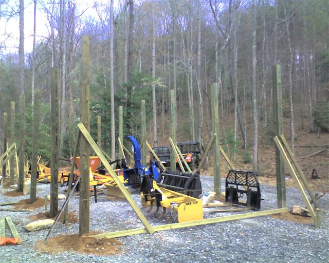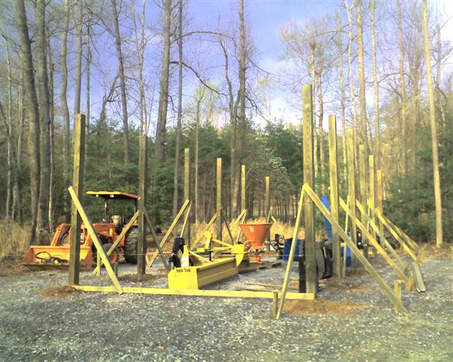 This last weekend began the post setting phase of my 16 x 42' pole barn. It will hold the tractor and all my attachments. They really need to be under cover. This past year has taken it toll on the implements.