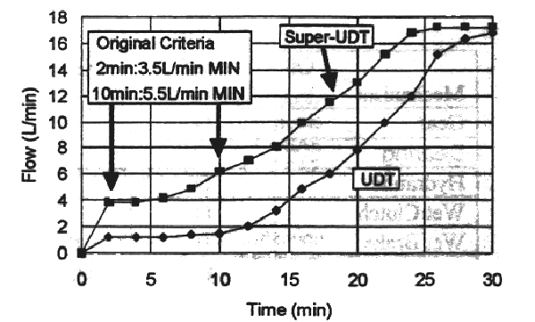 UDT could never hope to match SUDT, it is chemicaly & physically impossible for a straight cut 30 weight dino UDT to come anywhere near the flow characteristics of a multigrade 5W-30 synthetic, as the graph indicates, flow rates are 200% to 300% better during the critical first 15 minutes of operation....I'll take my SUDT anyday... without the waxed paraffins! /forums/images/graemlins/cool.gif