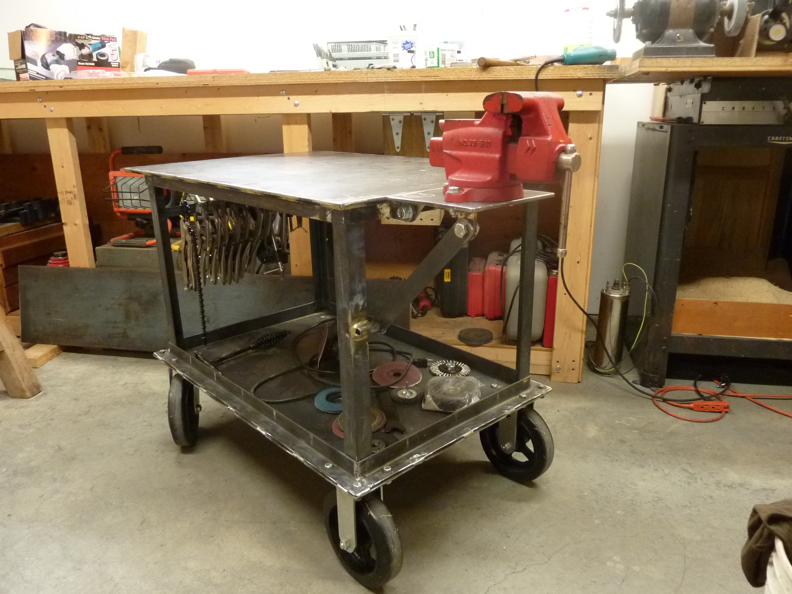 I love the hinge on the vice Gordon ! If you take the filter out of the shop vac you may have less chance of sparks lodging in it and starting a fire from the fanning action. Had a case where someone used a shop vac to take ash out of a pellet stove and a fire started in the filter. They do make a ash vac that has a 'fire proof' filter.