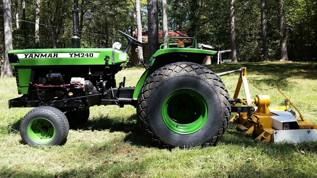 Hello all, I'm new to the forums and new to the world of tractors. I just completed my first purchase, a Yanmar YM240 that I found locally on Craigslist. The prior owner was an older farmer a few towns over, who used it mainly for mowing his 2 acre lawn at the house. Other than that, he just tinkered with it in the garage. I think that it's in pretty good shape, very clean, and you can tell he took care of his equipment. He was good enough to offer to deliver it to my cabin about an hour away, so that was the icing on the cake and made it too good of a deal to pass up.