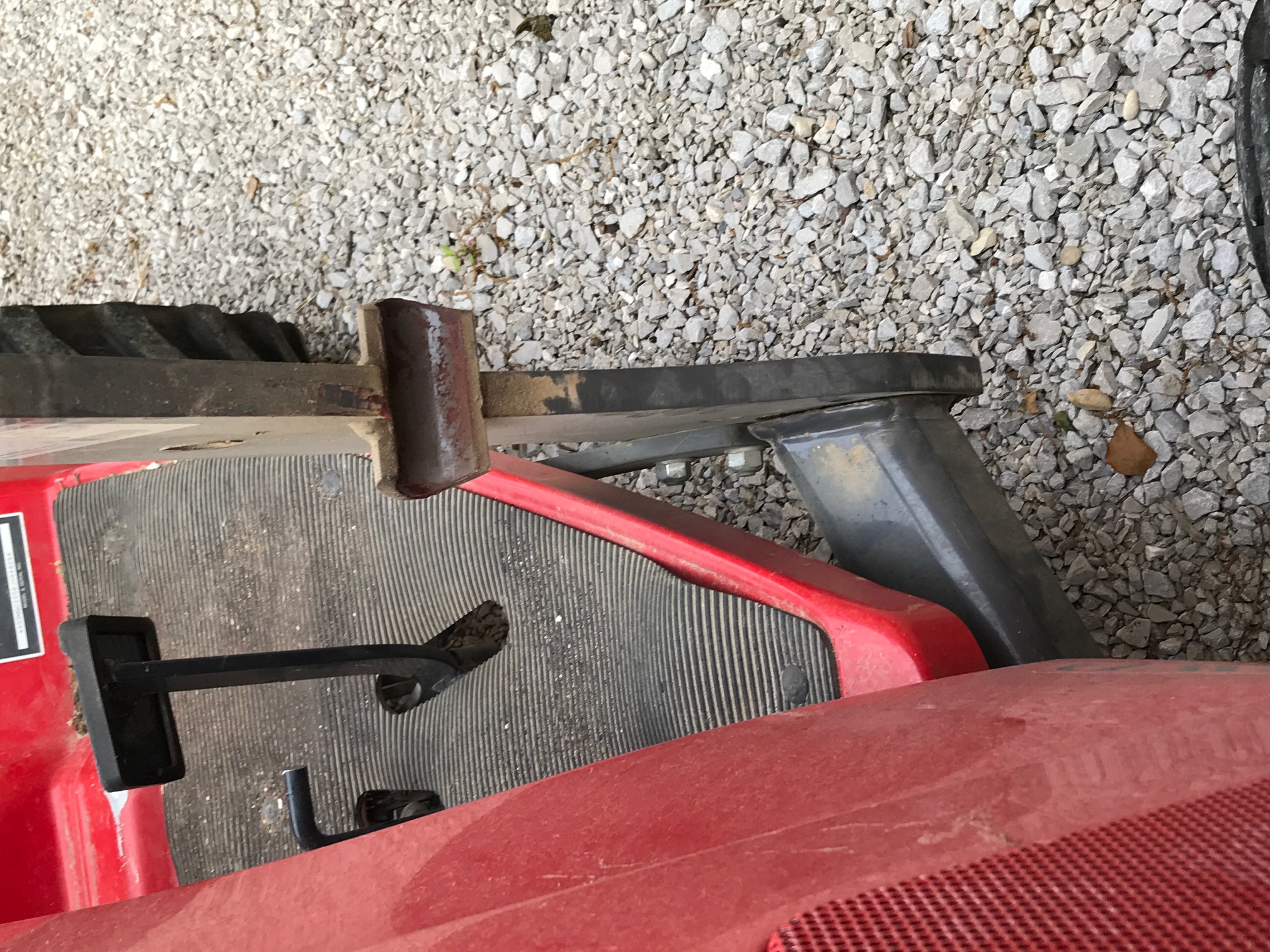 The bolt that secures the lower three point hitch arm pin in place fell out, causing the pin for the arms to slide out enough that the left arm was flopping around (another must fix yourself....because I was using it at the time)