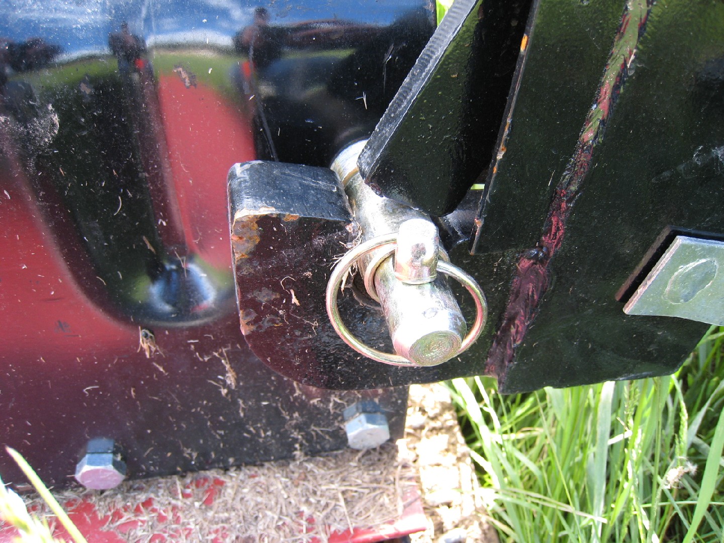 I finally got some pics of the HF hitch. Howse brush hog attached, showing very little sloppyness on the lower links and the washers I added to the 'quick hitch ready' Howse Box scraper.