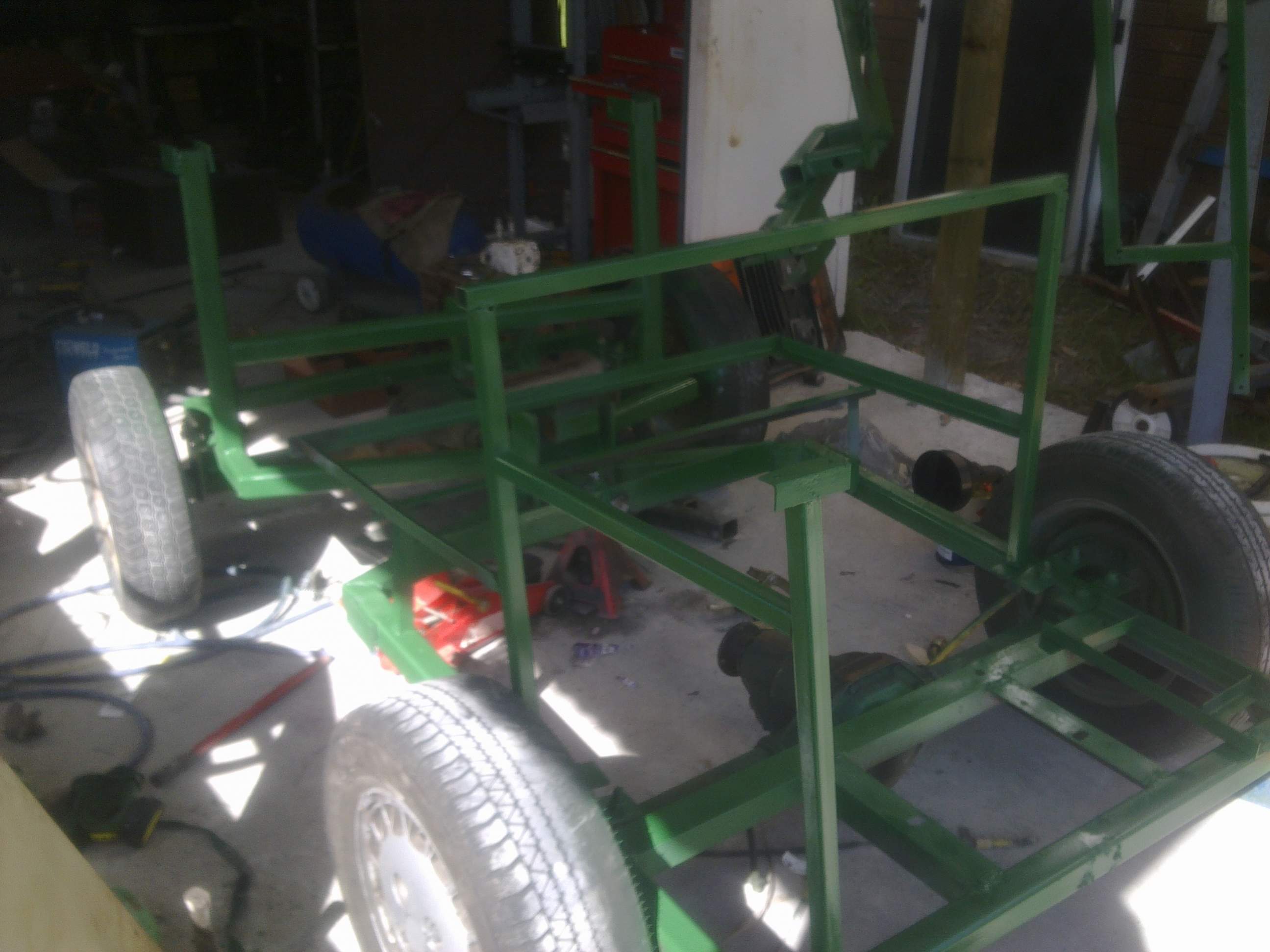Nice project. My comment may be premature. On the axle mounting you have straps over the frame and bolts(3rd pic), I would recommend using a single plate on top and a plate between the axle and frame and cutting some round tubing to keep the straps from bending and coming loose. I have to add spacers on a trailer I borrowed as the jack keeps coming loose.