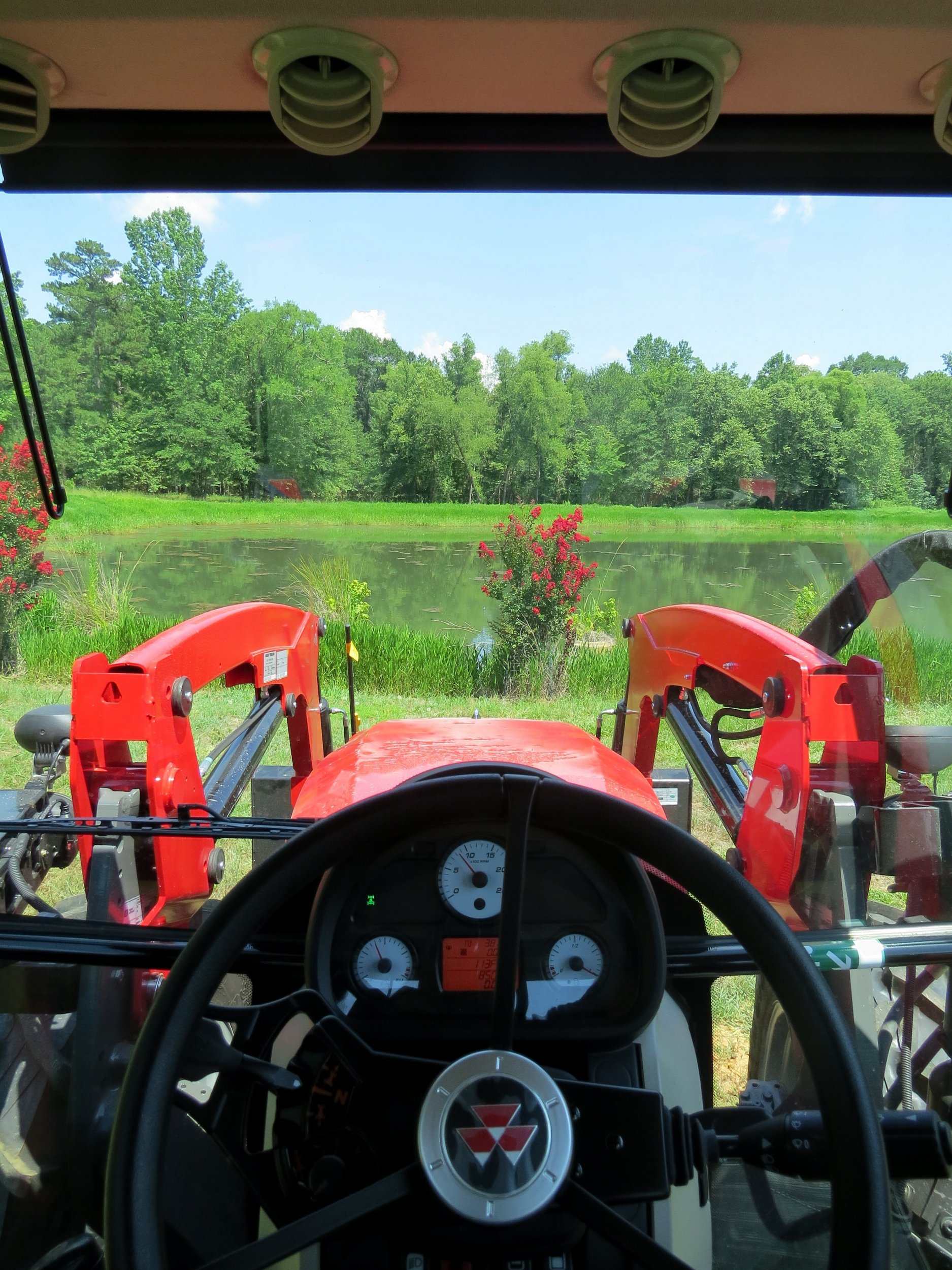 One of the benefits to waiting so long is that I ended up getting a 2022 model for a 2021 price. For this year, Massey put a new AC system and roof on their 4700 tractors. Nick told me that before he delivers the tractor, he would modify the AC system to make it better. There are some posts on FB about the AC not being as good as it could. After driving it around for a little bit yesterday, I can say that the new AC system is amazing!!! 101 was the high temp for the day, and I was very comfortable inside the cab. I started out with the fan on 2, and then turned it down to 1. When my wife got home, I turned it back up to 2 so she could see how cold it was inside the cab when we went for a drive. She said that the buddy seat was very comfortable!!!