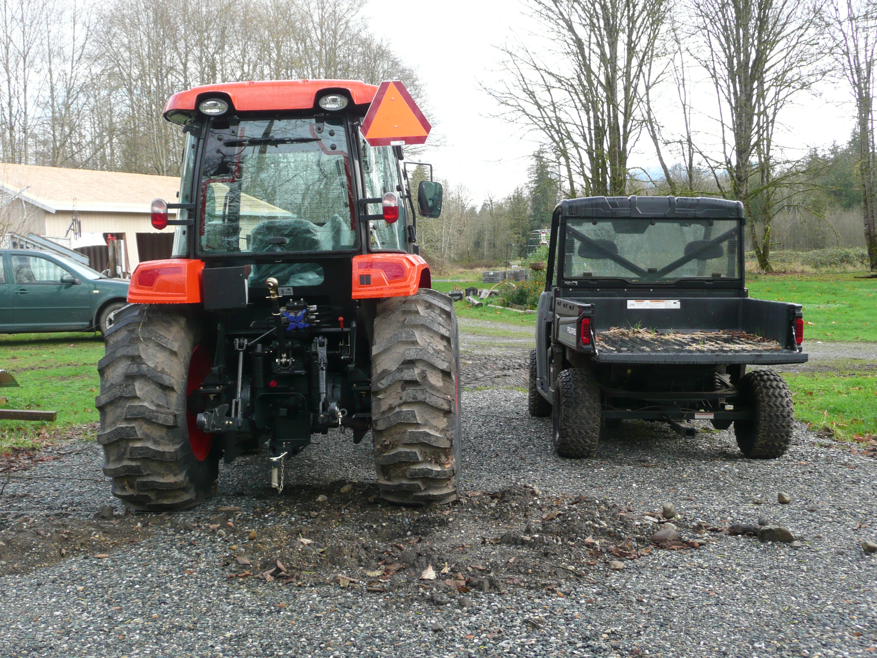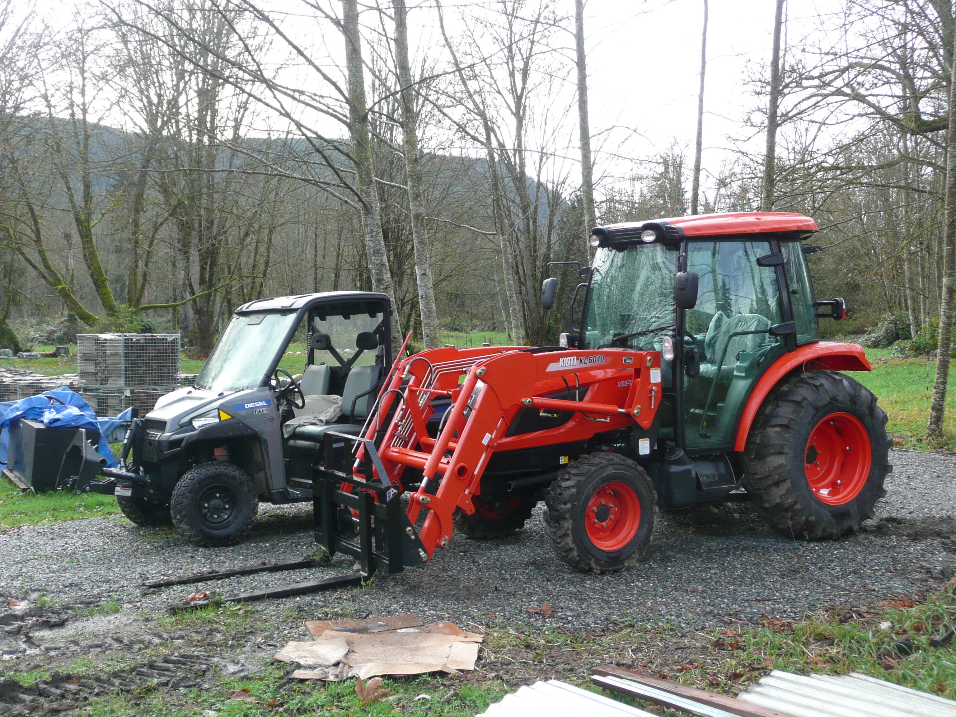 Tractor and Polaris are currently parked side by side and I thought I'd grab some pictures of them after noticing how much smaller the front profile of the tractor is with the bucket off (had the pallet forks on).