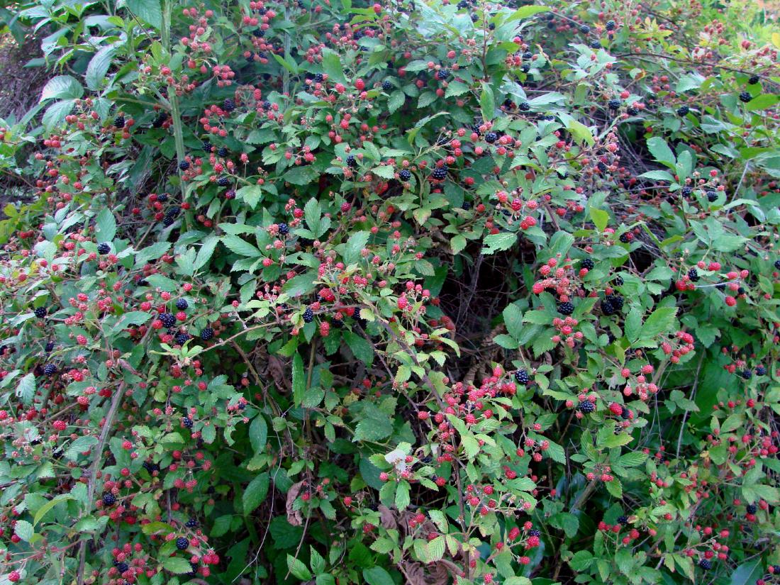 I wanted to plant some of the thornless blackberries to try out but since we have so many wild blackberries in our area they said we couldn't do it because they would just cross-pollinate. I have a few very nice large wild blackberry bushes that I would love to keep but they are on piles of trash that I have to move and I don't know if I can transplant them or not. I need to study up on blackberries a little to see how to manage the ones I have because they produce so well. I took the photo of the blackberry bush after I had already picked a quart of blackberries off it, then decided I wanted a photo.