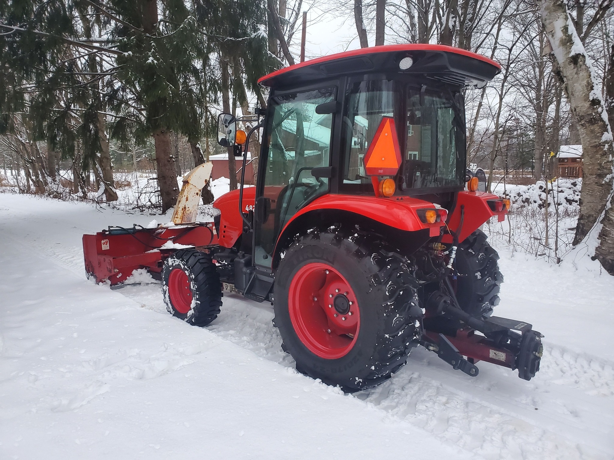 So far it seems like a good tractor. I run a 7' brush hog, a 6' flail mower and now this 6' blower. It seems to run all that just fine.