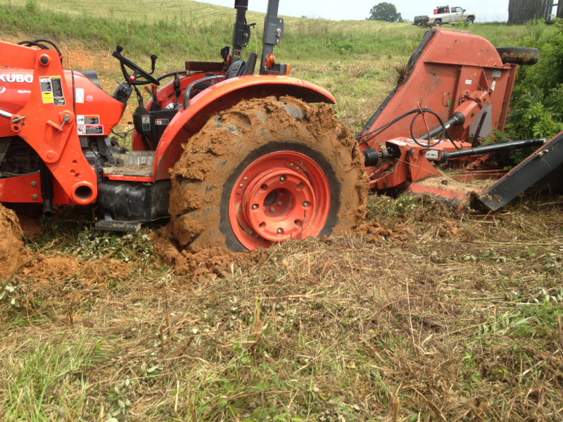 I don't know what is worse, the owner who told you to mow it or the folks on here who've never actually retrieved a piece of equipment from a precarious situation telling you how to get it unstuck.