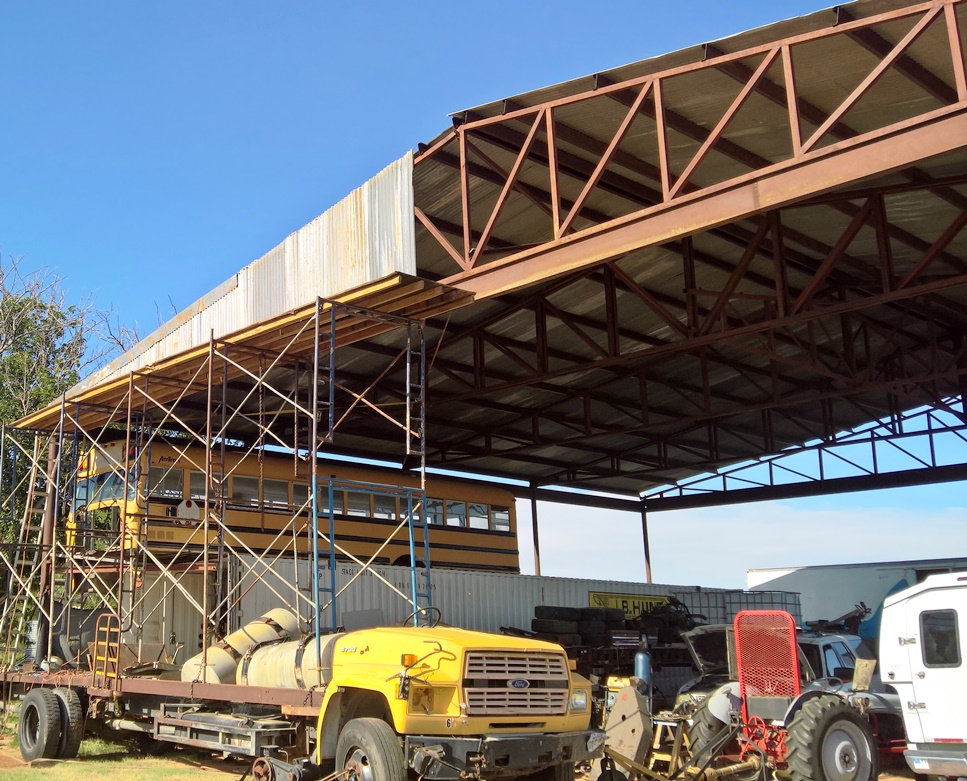 You know a man of action when he has a bus in 2 parts, 90 degress of each other, one a mobile scaffold, and the other 10' in the air! Amazing Frank, amazing.