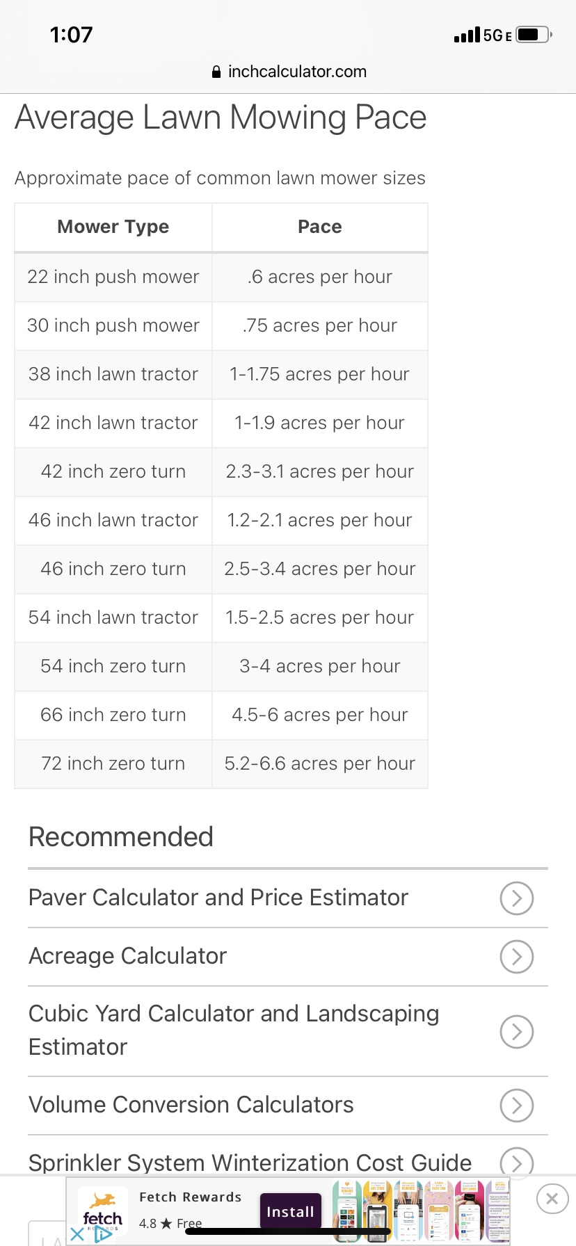 I also have a 60 inch commercial. I can get 3 acres/hour if I concentrate and don’t mess around. I do have some trees and berms to navigate.