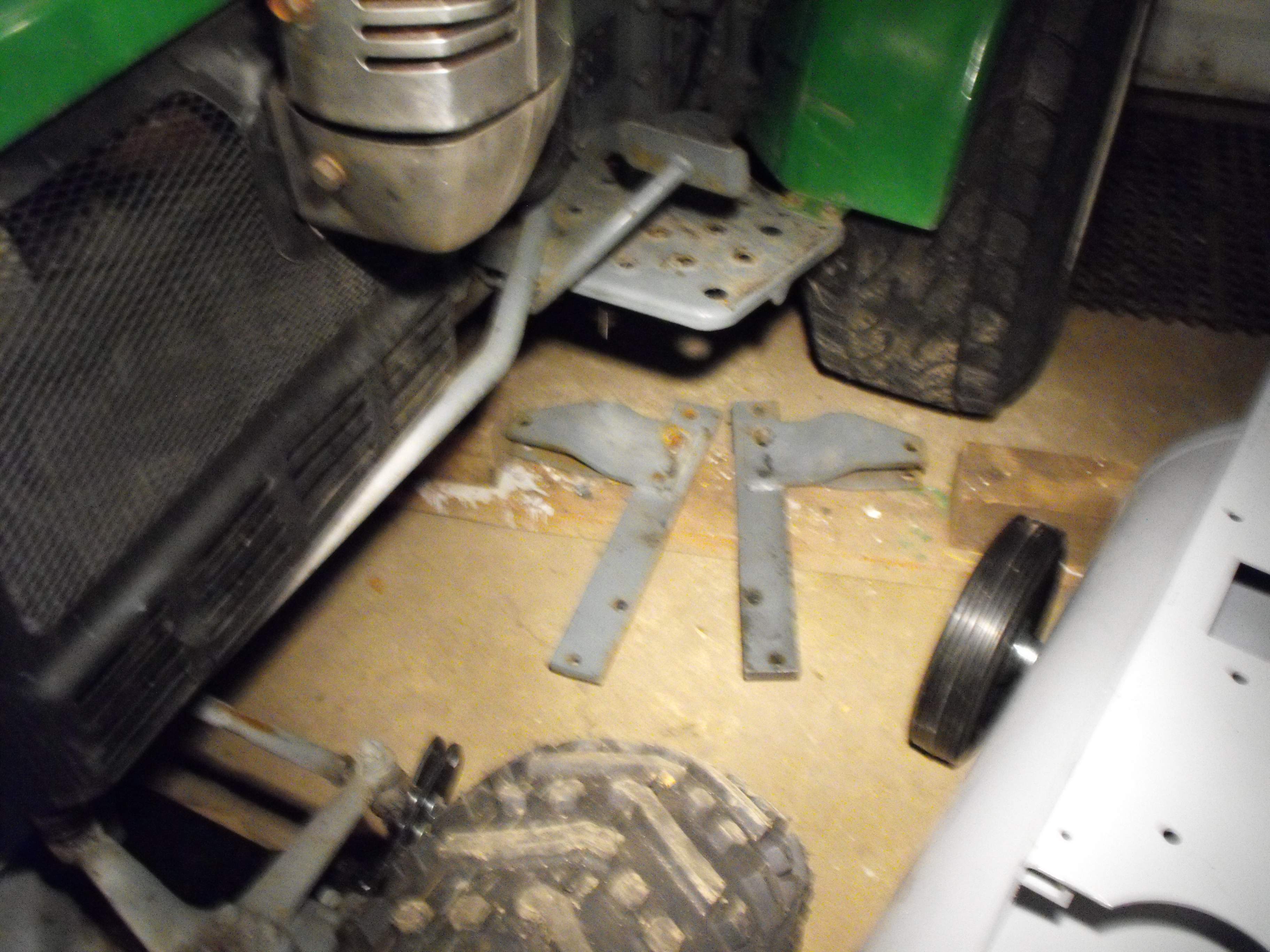 I was able to get into installin' my snowblade,the mounting kits for the different model ATV's recommended to be used to mount this blade cost including tax around a $100.00,I went with plans with usin' the old belly mower brackets,after cuttin' one to fit with my metal chop saw and breakin' and wearin' down a few metal cuttin' discs plus blowin' 1/2 dozen fuses,I got one cut,these brackets are almost a 1/2" mild steel mind you and tough to cut through,anyhow thats not my only probem,seem the mountin' holes don't line up proper,so I'll have to file out the holes,I drilled one out larger on my drill press,which took some doin' as well,as for attachin' it as I do have threaded bolt holes in the frame plus go into the side of the cast iron engine block,but I only have one bolt that is long enough to catch a few threads without a lock washer, bein' metric as well, I'll have to look to buy 4 bolts around 2- 1/2" in lenght to secure the bracket proper complete with lock washer e.t.c.,I doubt if Canadian Tire will carry the diameter or lenght I need,but I'll take a look,quite possible Napa be my best bet for these,I had to inlarge the predrilled holes on the push bar frame to accept new 5/8 shoulder bolts,this left me with very little (meat) metal,but bein' hard to drlll, should be okay for the time bein' if not I'll have to take it off and get it beefed up when the time comes, seems something that looks easy and straight forward doesn't always turn out that way,but so far,it's lookin' like I'll have a workin' snowblade soon after a Tyenol # 3's for my headace not coutin' broken metal cuttin' discs and blown fuses,I even blew a 20 amp slow blow,a 25 and a 30 amp fuse,my Power Fist chop saw is a 15 amp beast from Princess Auto,if I take it slow and easy I should be okay cuttin' the other bracket,maybe I'll take the chop saw back trade it in for a brand name unit and pay the difference in cost,my work area is a real mess with metal shavings e.t.c.,I can't clean this up till I'm able to move the tractor,and right now that seems impossible with the snowblade half installed on one side,real bummer,besides my brokin' mendin' foot is still botherin' me a bit, but I'll stick with this nerve rackin' job till the end,I'm much too involved now to quit,maybe a few suggestions from some of you nice guys out there,on the best way or a hint to get these holes to line up usin' a powered type method that I can't think of right at this moment, on these darn belly mower brackets,my only thought is to use a rat tail file,but this is the hard way of doin' it and may take me till Xmas to get it done,the drill press is no option as well,because it jams the bit, anyhow as always thanks for now,sorry guy's, no time for pix's at this dull moment>>>take care>>>>>