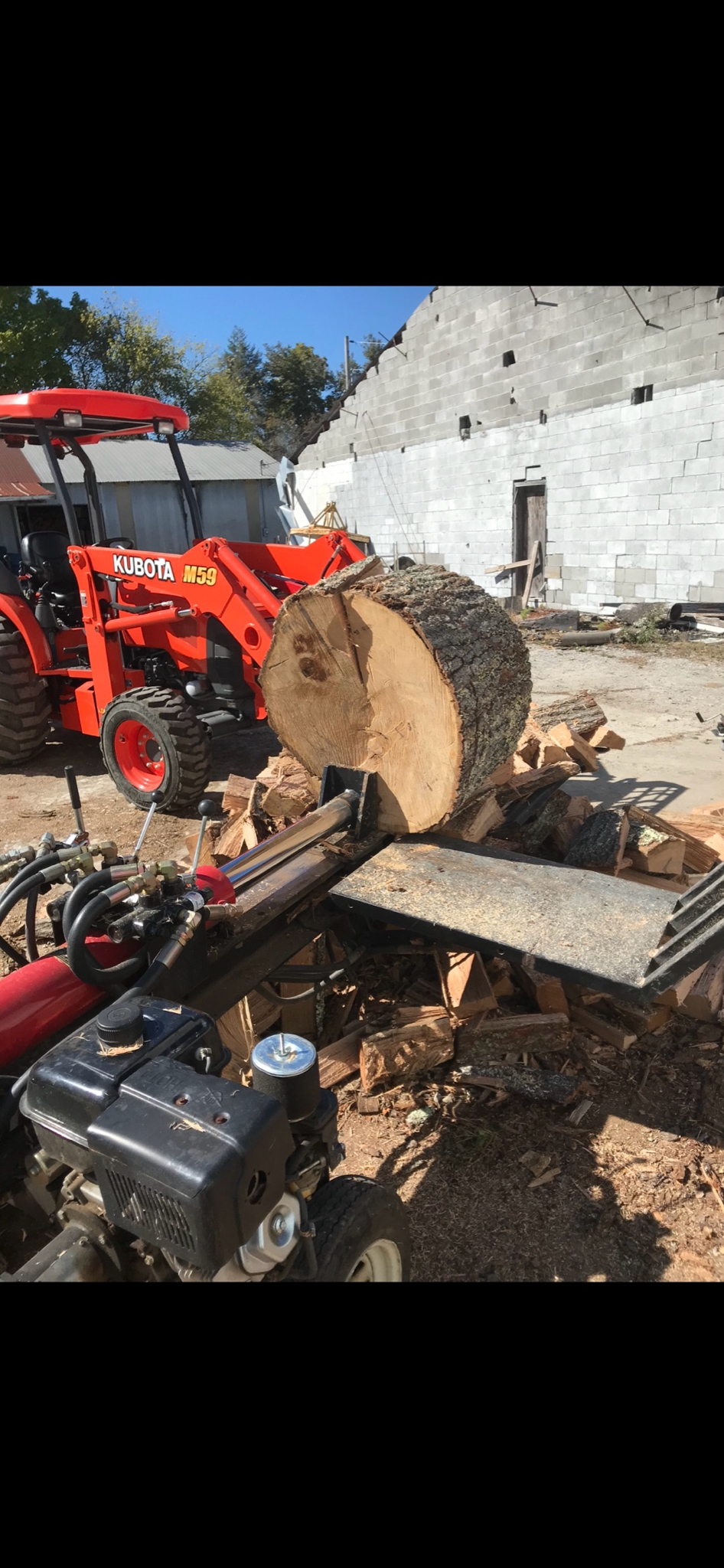 Roll the big ones on to the deck, lift with the 3pt, roll the rounds off to the splitter rail.