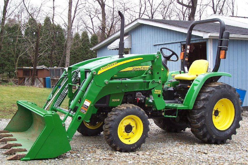 I finaly got my 3203 today! I ordered it with the 300X loader and the vertical exaust. Just want to say that it is possible to put a 300X or CX on the 3203! I think that this model is often overlooked because of what some people think about it. This is a good little tractor and I trust that Deere knows by now how to build a good tractor, no matter what model is chosen!