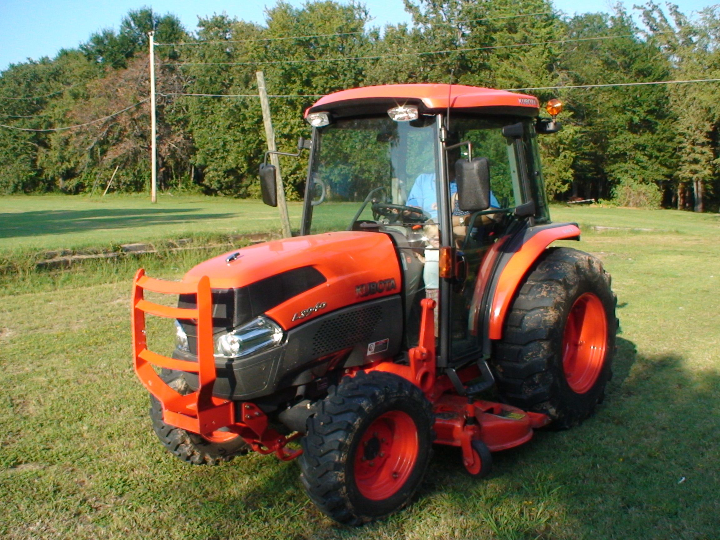 Hey John, the tractor just posted the 400 hour service notice. I have only had a couple problems with the mower. The rear center height adjustment wheel has bent just a little from all the bouncing around. I hate to say it but Kubota should have built it a little heavier. Ill post a photo of it. Another problem that I have had was that I burned a belt off, I think it was the second week of ownership. There is allot of horsepower for that size of deck.