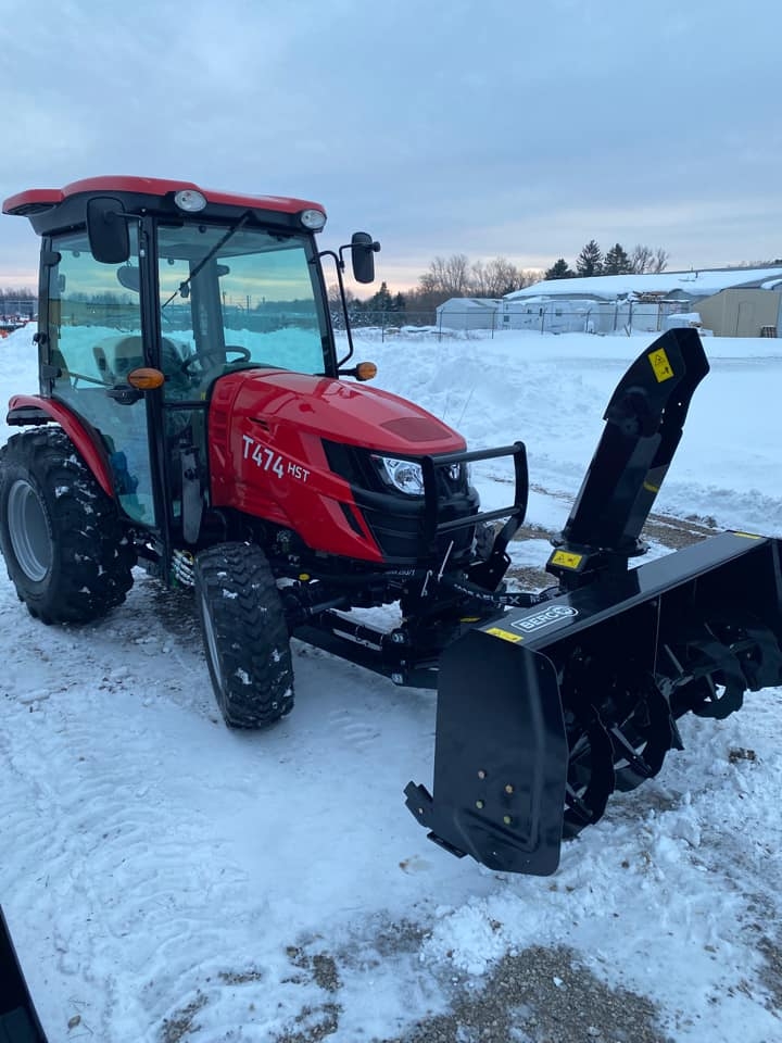 There is a dealer in the Midwest that sells T474 with this setup (M &M Express Sales in Minnesote) and the 66'' Bercomac setup. The T474 HST supposedly only puts out 32PTO HP. And Bercomac says max 36 PTO Hp. I have a pull type snowblower, because none of this info was available to me in 2020, I've losely started to gather this info, VERY little pictures available too.