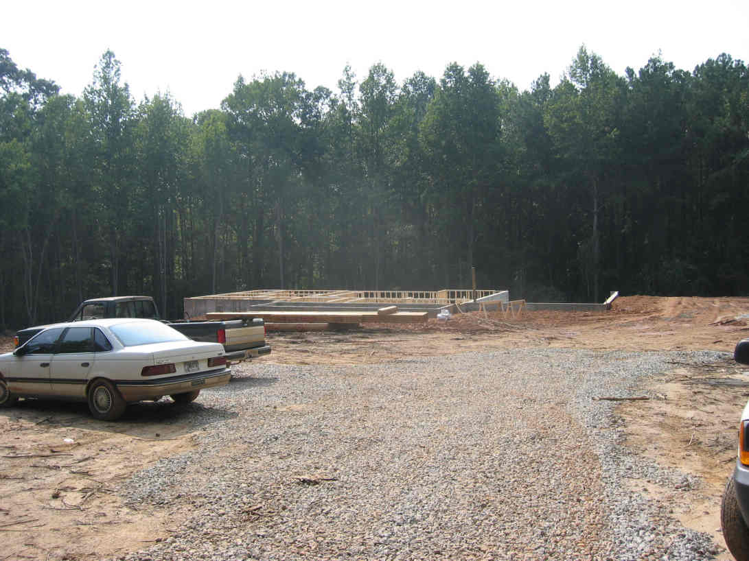 Today, I drove up to see (a) someone else's vehicles and (b) wood. Wahoo!!! Framing has started!