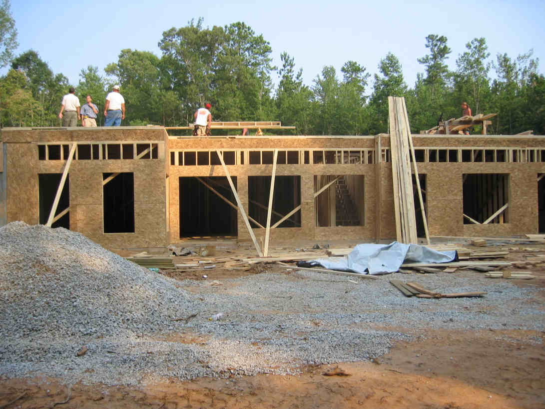 First was the sheething. They put it on to cover the upper corners of the openings. This is the way it shoud be. On some projects I've been on I've seen it just lined up with the outside opeing of a door or window. With the overlap, you get your strength to tie everthing together. The same aplies with sheetrock. Overlap the inside corners and you wont have any cracking. Just one of those little clues you look for in a good job compared to a bad one.