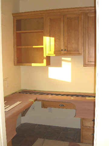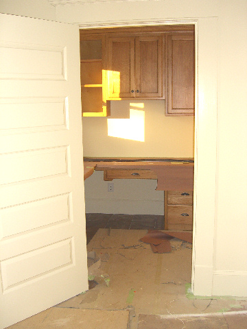 I don't think I've shown the mud room or office before. Here, I'm standing in the breakfast room looking into the mudroom. The door on the right leads to the garage. Straight ahead is my wife's office. She wanted a small office here to serve as a place to drop off the mail to keep it off the kitchen counters. Here, she can sort through everything and keep the bills together for payment at the appropriate time. She'll have her computer in here as well.